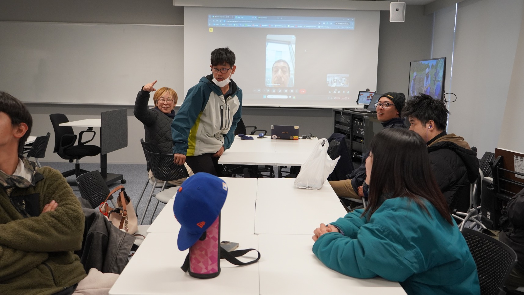 その他にも社会学部の学生が集う聞思館プロジェクトワークルームで障がい者による自然栽培の農業を全国へ広げていく活動をしている自然栽培パーティの動画鑑賞をしたり、オンライン授業の雰囲気を味わってもらったりと、「大学」を満喫してもらいました。