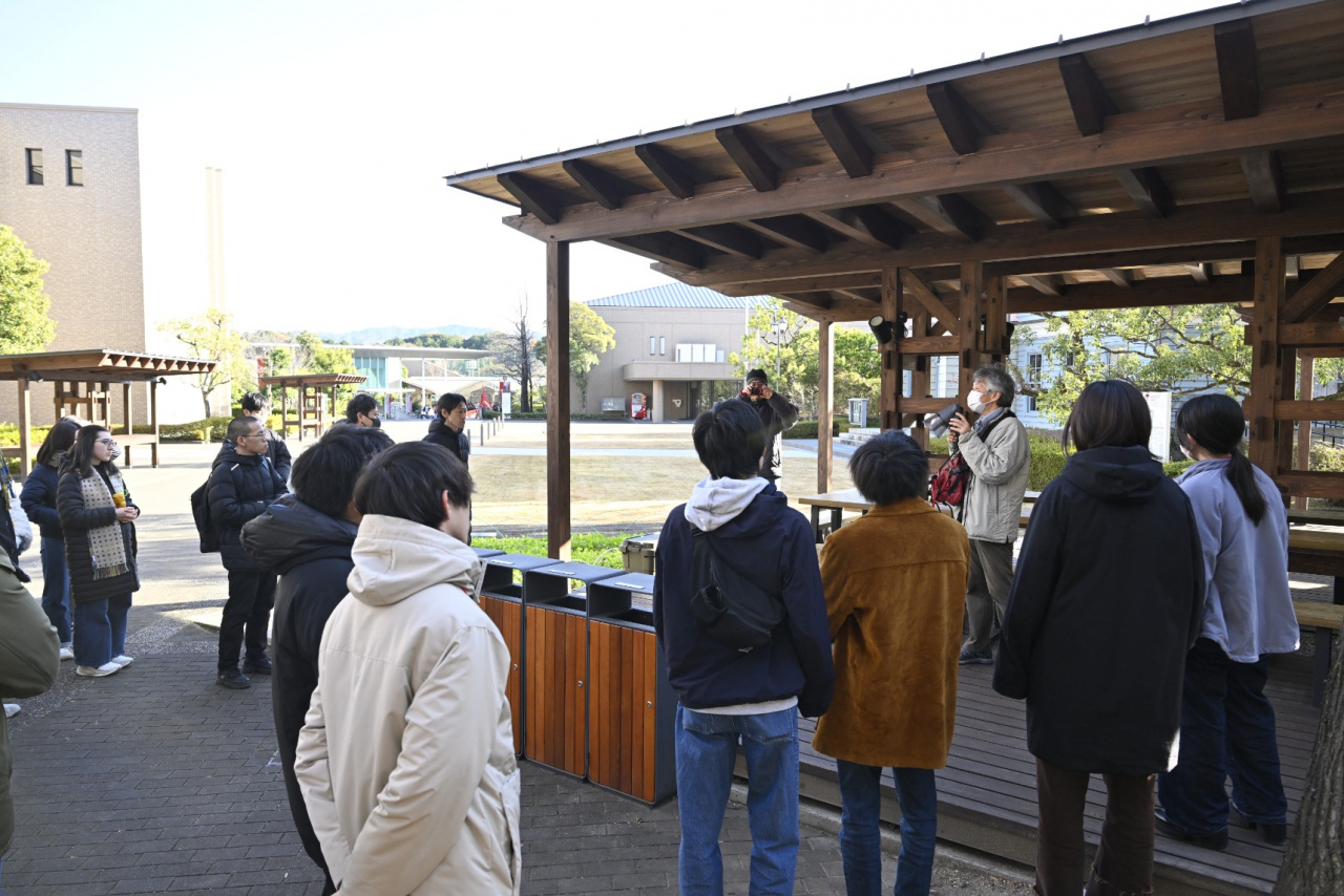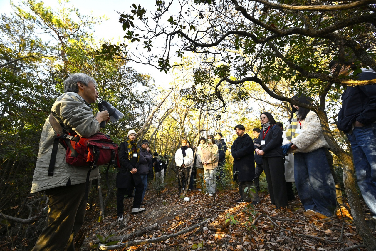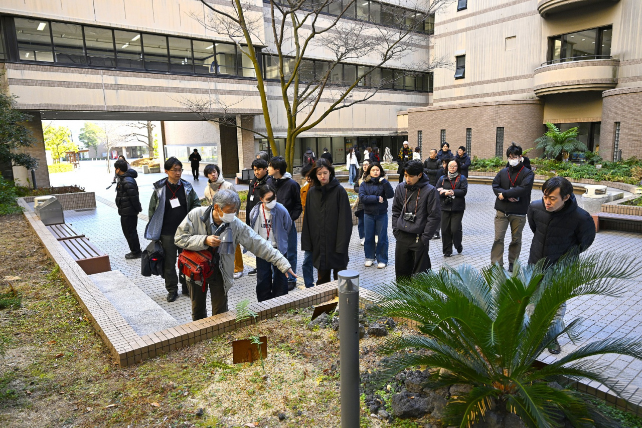 後半では、横田 岳人准教授(先端理工学部)より、今回のテーマである「龍谷の森」や会場となっている瀬田キャンパスについての紹介がなされ、その後、瀬田キャンパスと「龍谷の森」でのフィールドワークが行われ、参加者は冬景色が広がる瀬田キャンパスを堪能するとともに、「龍谷の森」について深く考える機会となりました。