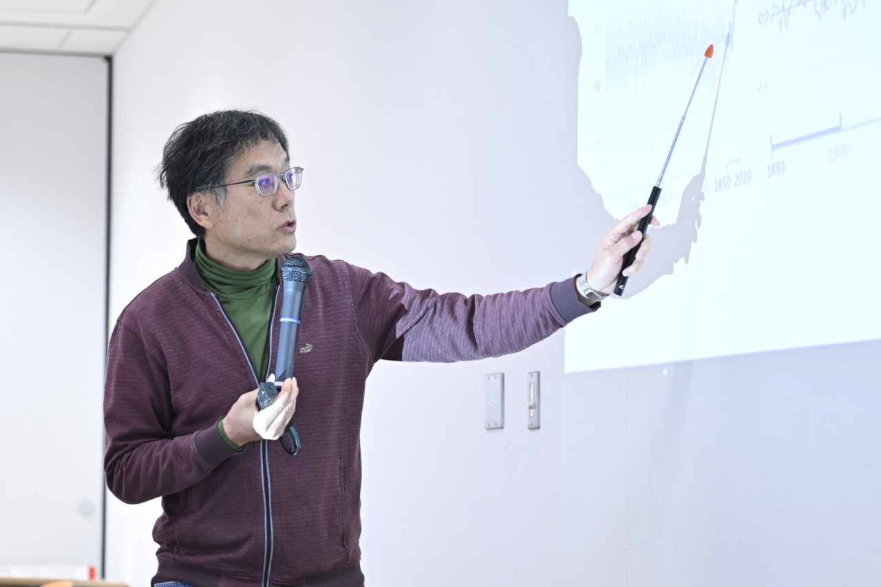 さらに、カードゲームでの知識をさらに深いものにするため、斎藤 文彦教授(国際学部)より「SDGs・気候危機・私たちの未来」と題し、世界で発生している環境問題の現況や、自分達に何ができるのかという考えを醸成できる講義がなされました。