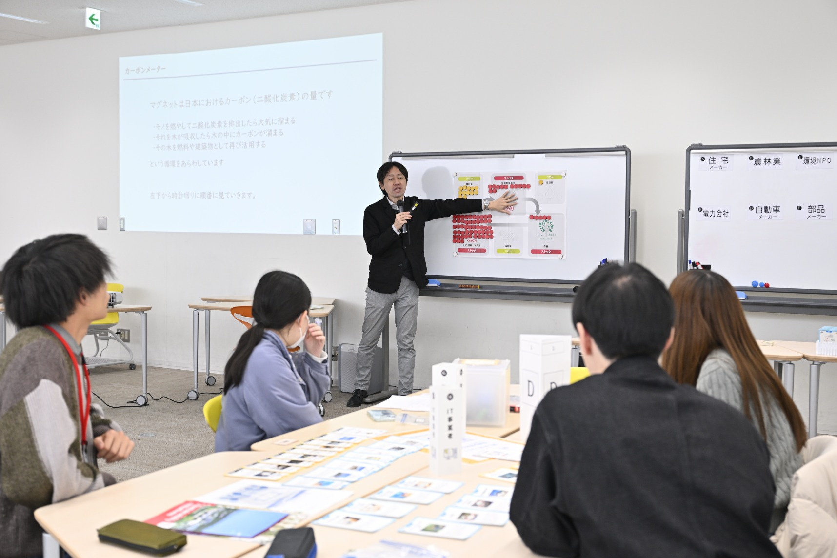 参加者は、チームメンバーと協力し、「なぜカーボンニュートラルが叫ばれているのか?」「そのために、何を考えどう行動するのか?」を話し合いながら、ゲームのクリアを目指していました。