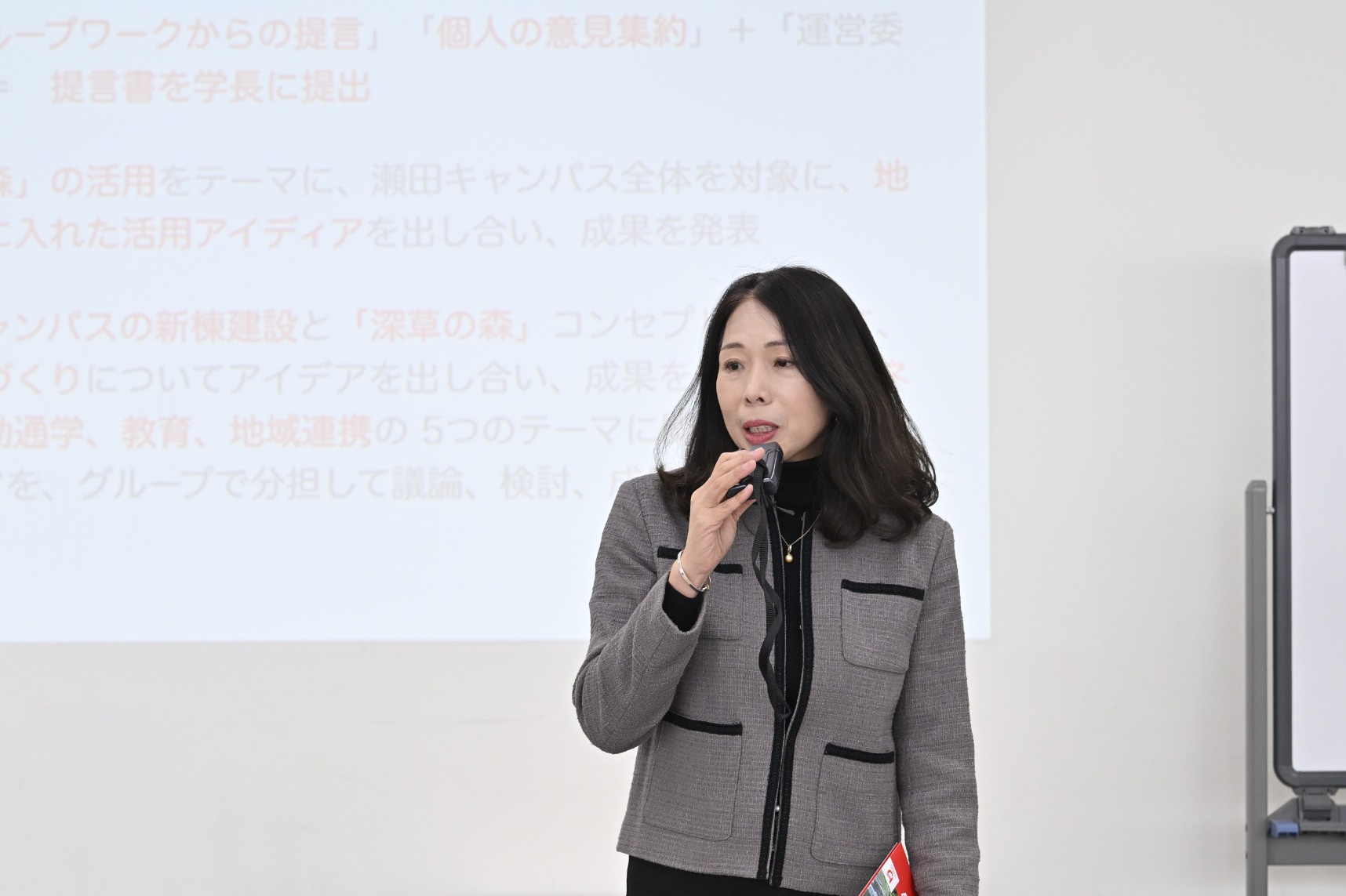 村田 和代副学長から、参加者に向けて「楽しみながら気候変動について学び、学部・学年を超えて、わくわくしながら参加してほしい」と開会の挨拶がなされました。