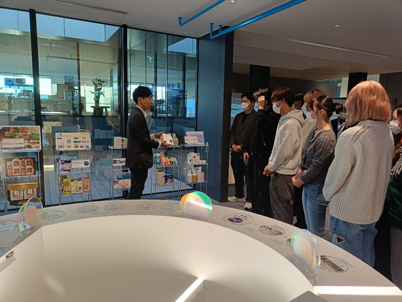 ヘルスケアスタジオでは、体組成・血圧・糖化度(AGEs)を実際に測ることができ、学生たちも測定をしながら、データを踏まえたエビデンスに基づく健康管理の重要性を体験いたしました。