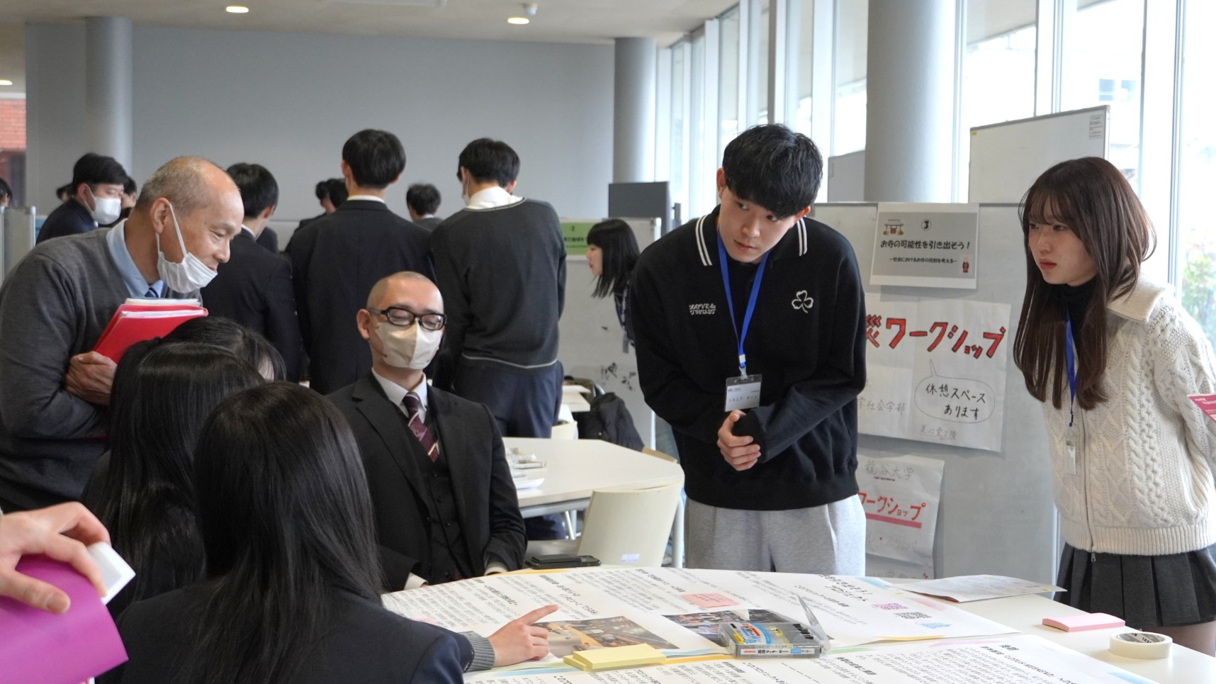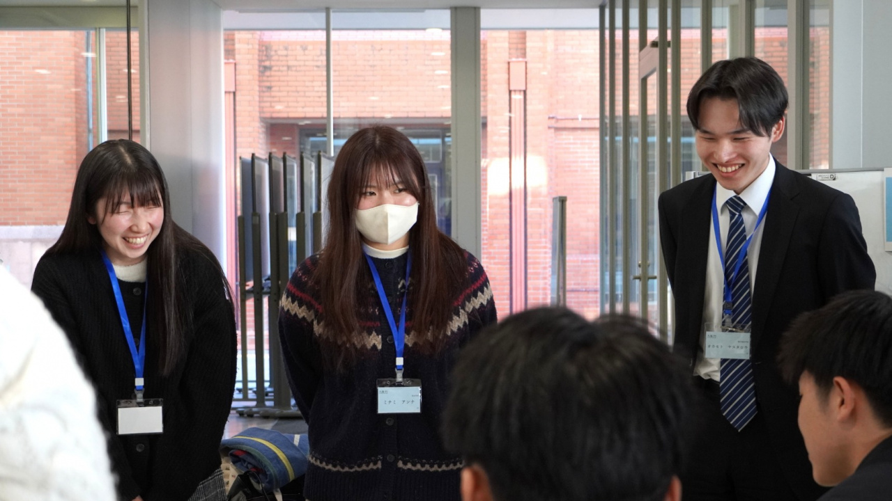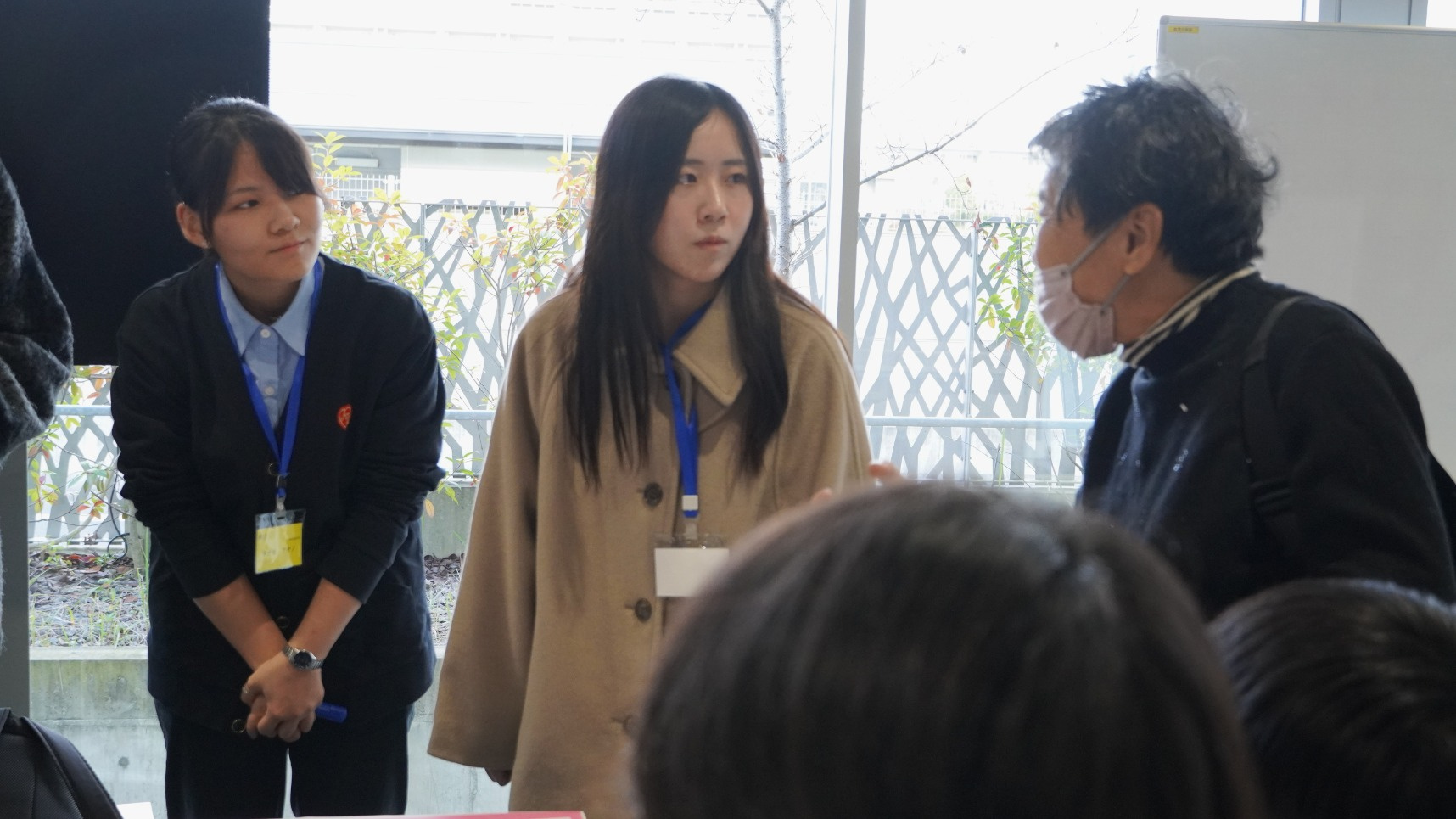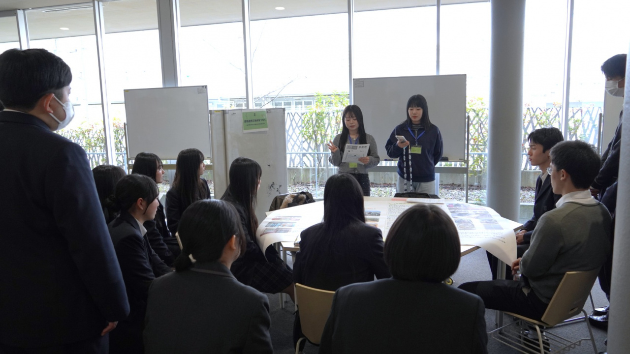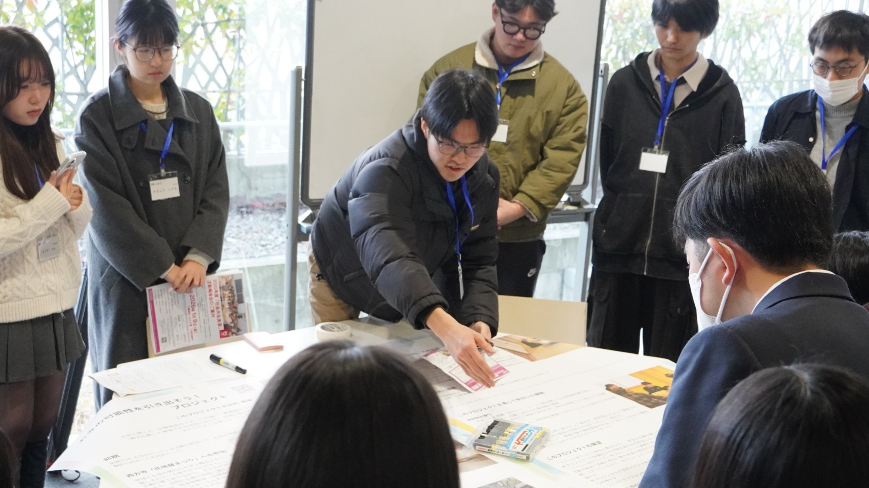 1年間の活動をまとめたポスターを囲んで、参加者からの質問一つひとつに受講生が丁寧に回答したり、意見交換がなされたりしました。