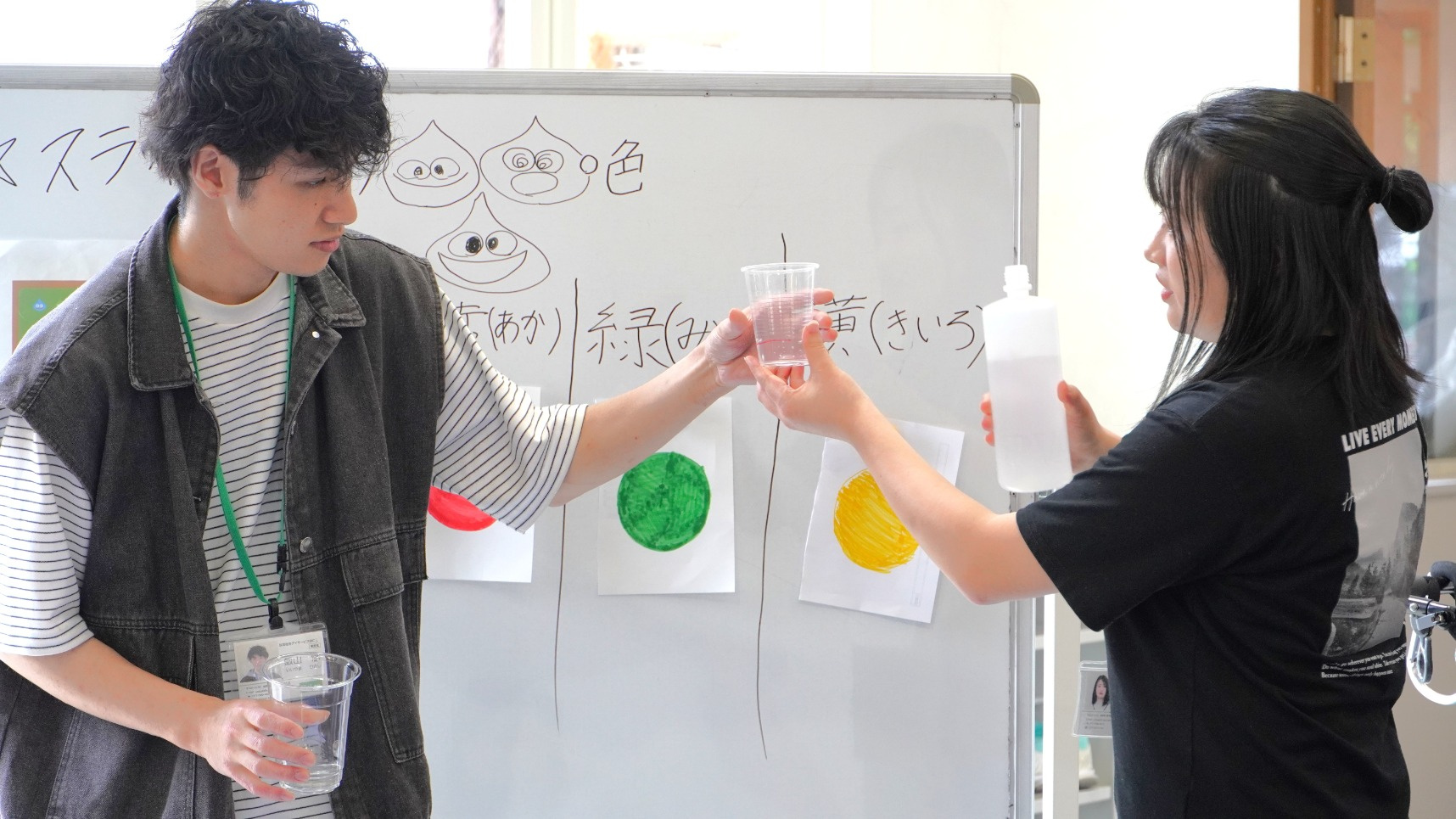 実習活動としては、基本的に週1回、決まった曜日に放課後の時間を障がいのある子どもたちと過ごすことが中心でした。子どもたちとともに遊び、コミュニケーションを取ることで、デイサービスの職員の指導を受けながら、それぞれの「個性」である障がいの特性についても理解するよう努めました。実習のまとめとして、その理解に基づき、実習生全員で土曜日の「設定実習」を実施しました。用意した「スライム」を子どもたちは喜んでくれましたが、当日は想定していなかったことも起こり、事前の準備の大切さや放課後等デイサービスの役割についても学ぶことができました。