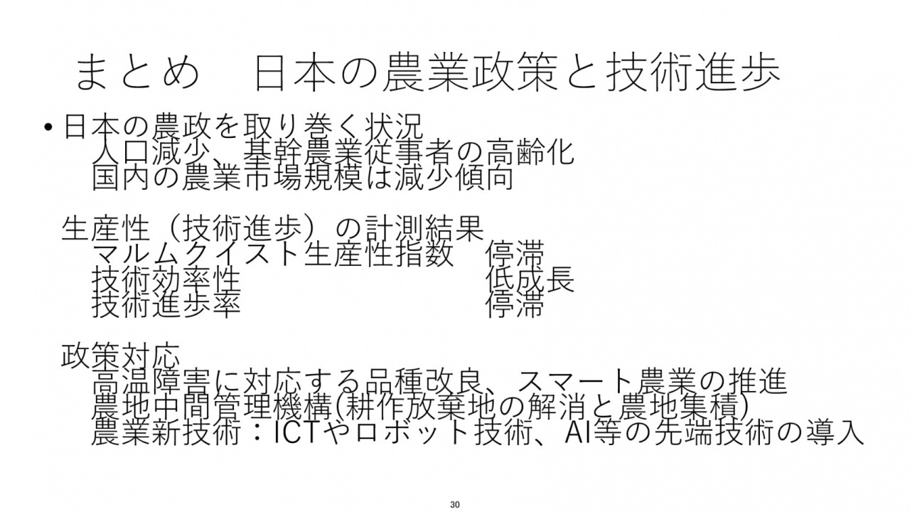 講演1「データから把握する農業技術の進歩」(15:05~15:45)