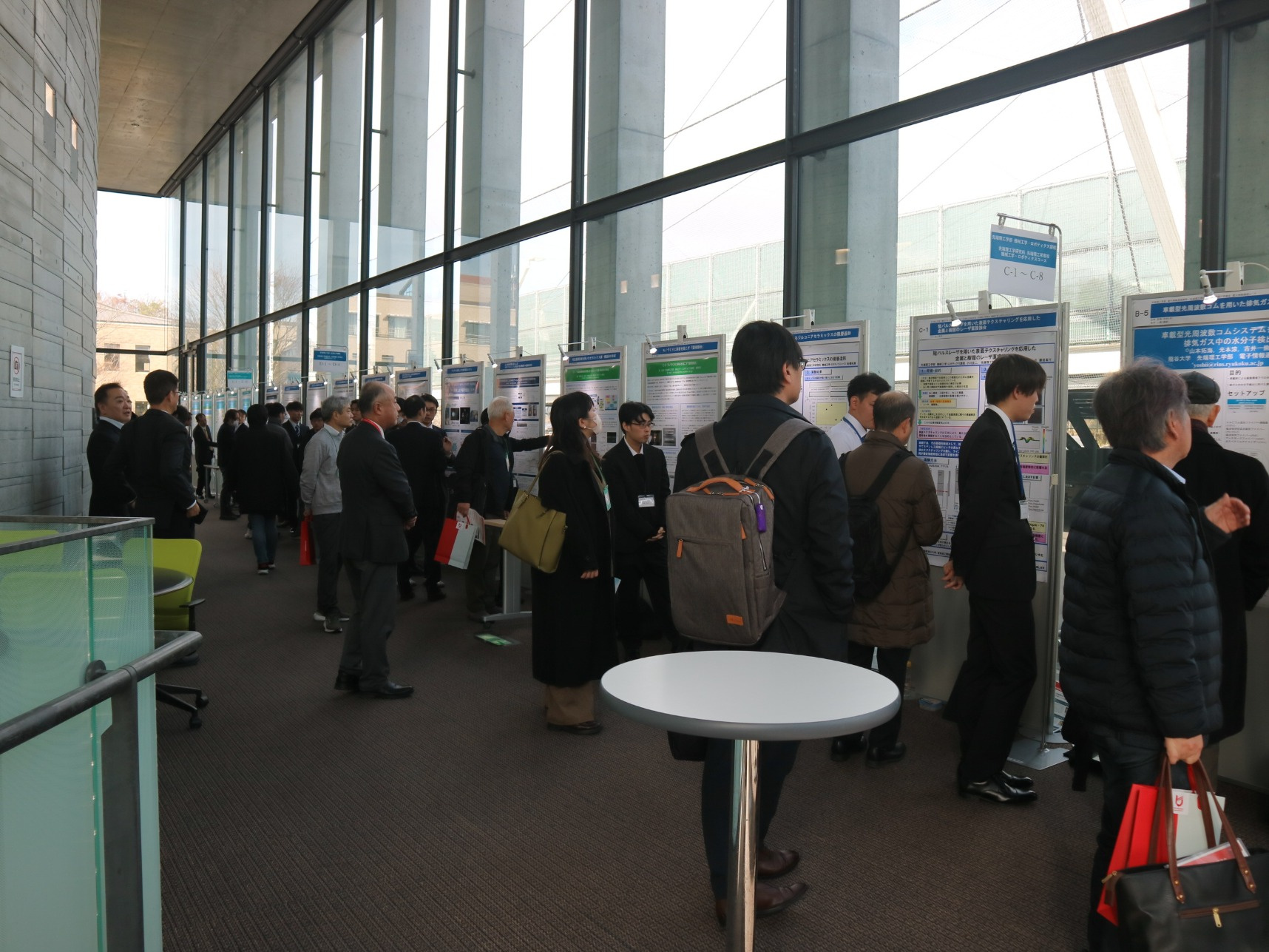 今年度は、講演会の開始前と途中にポスターセッションを実施しました。 自然科学系分野を中心に、教員・学生・研究員など 81件の研究グループ が研究成果をポスター形式で発表し、本学 URA や教員による技術相談も行われ、会場は活気にあふれました。