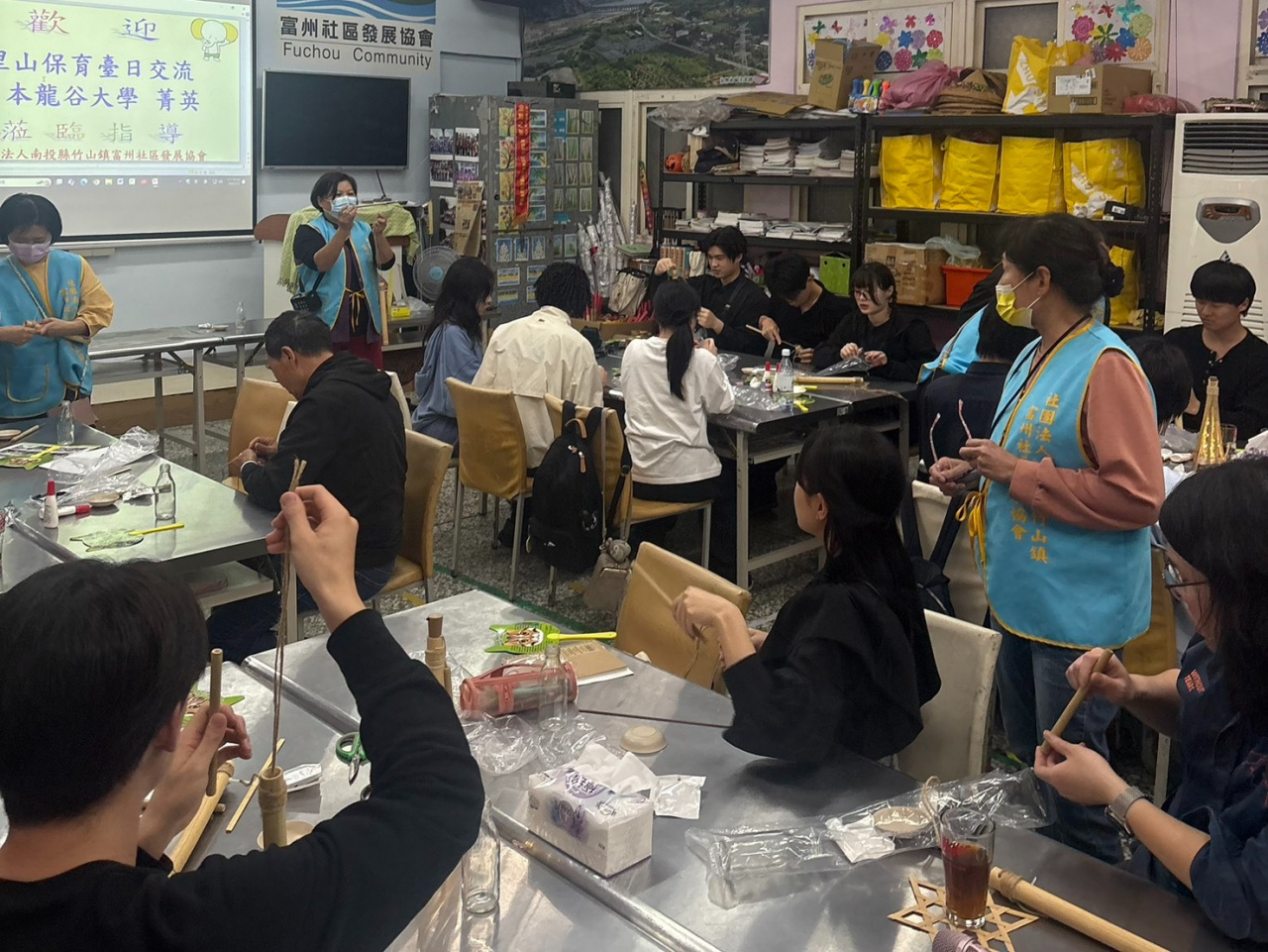 竹山鎮富州社区でのフィールドワークとして、まず1999年に発生した台湾集集地震の断層が保存されている「草籠埔断層保存園区」を訪問し、地震の脅威について学びました。そして、福徳正神を祀るお宮であり、金運上昇のパワースポットとして有名な「竹山紫南宮」を訪問しました。その後は、「富州社区発展協会」を訪問し、富州地区の概要と社区運営(まちづくり)の取り組みについて学ぶとともに、地元の伝統工芸品である竹灯籠を地元の方々とともに制作しました。その後は富州社区内の果樹園やコミュニティガーデンを発展協会の方々に案内してもらい、地元の農作物の豊かさを実感しました。富州社区を後にし、台湾で湾で最も大きな湖として知られる観光名所である日月潭を訪れ、日月潭の湖畔を自由に散策しました。