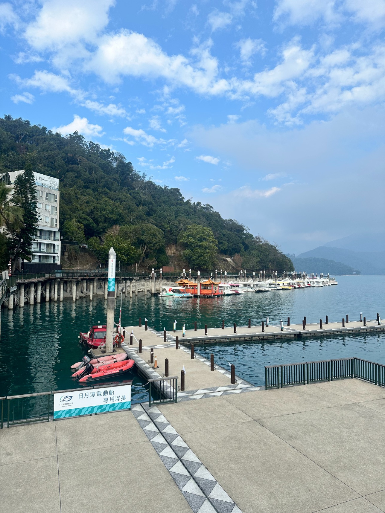 再び移動し、観光名所である日月潭に向かいました。1時間ほど自由散策を行い、美しい港の風景やお茶などを堪能しました。