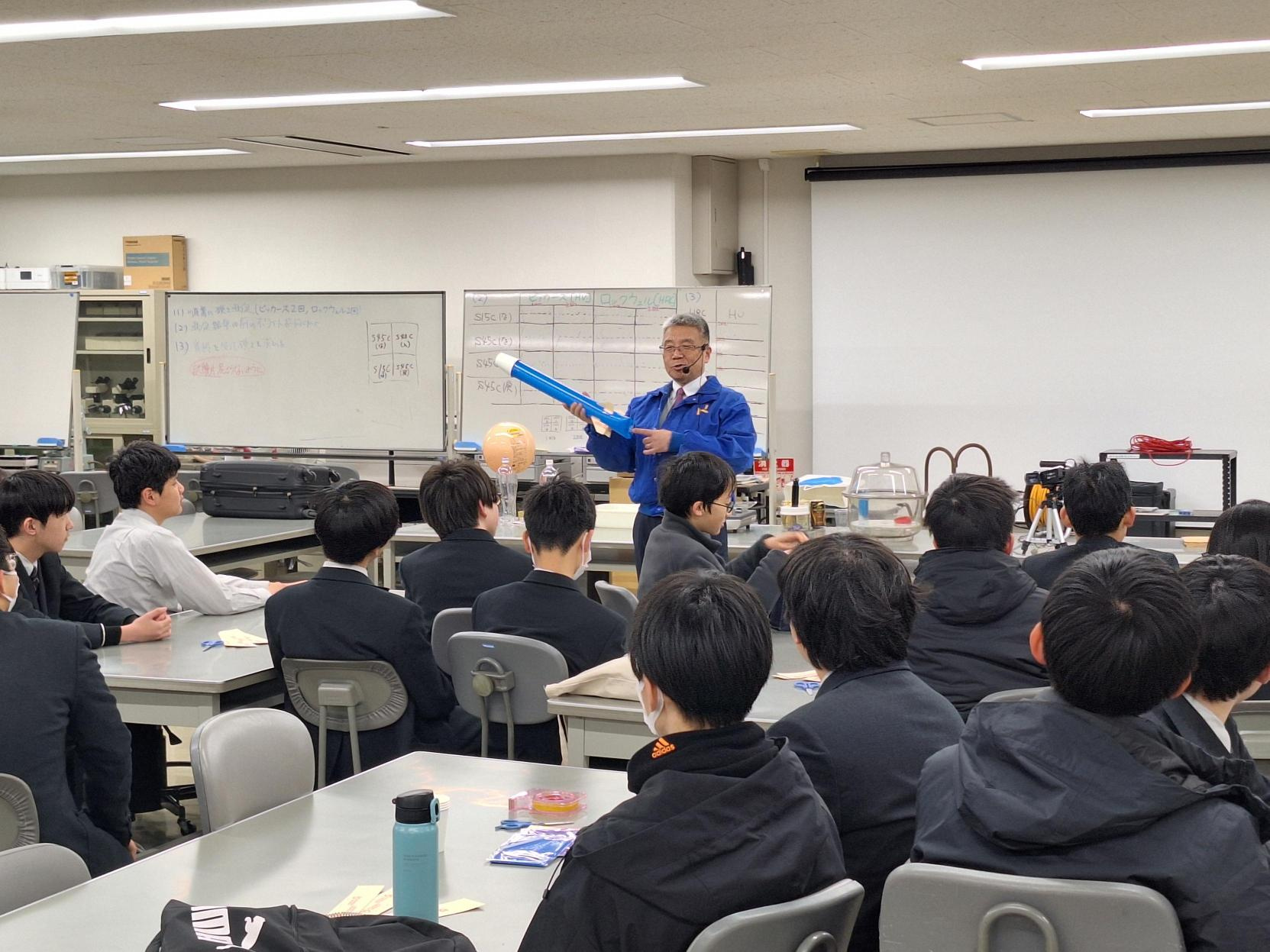 実際に手を動かし、また、実験を間近で見ることで、生徒の皆さんは関心をもって参加されていました。