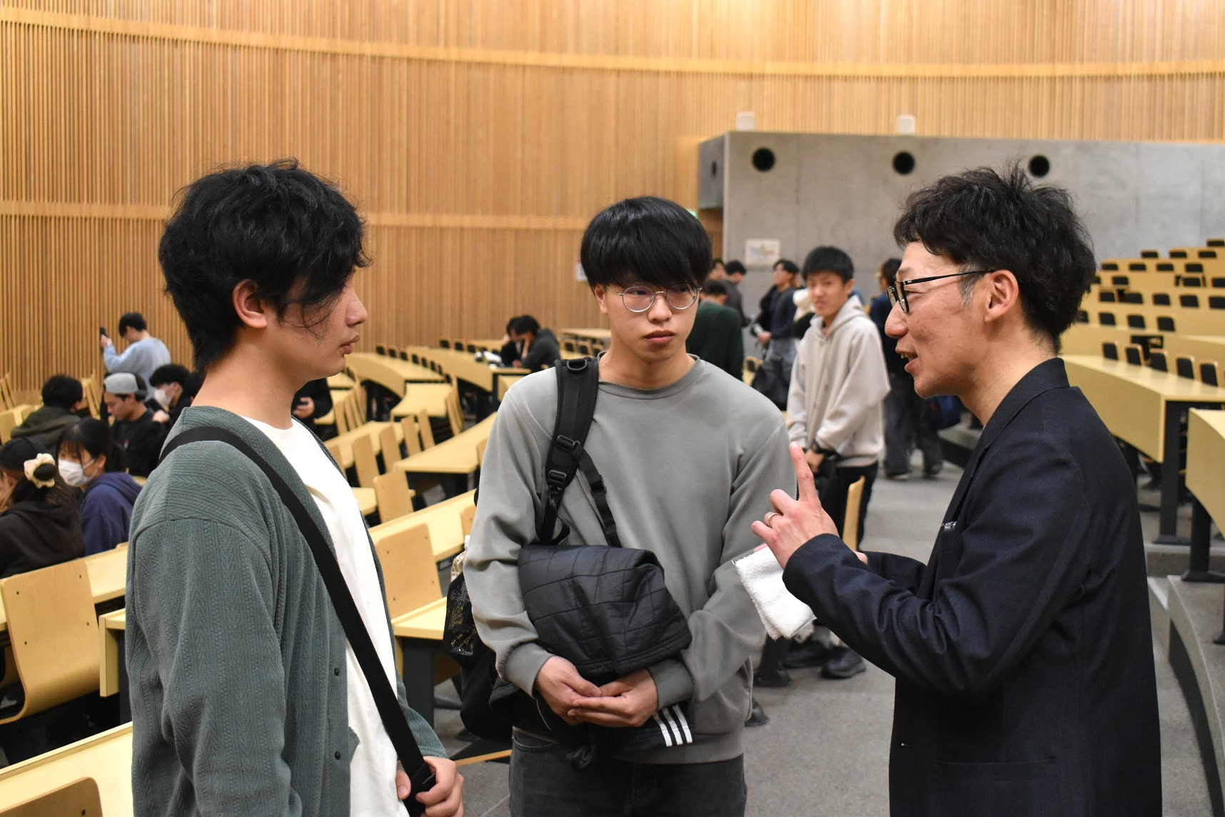 当日は、先端理工学部・先端理工学研究科・農学部・農学研究科の学生、約100名が説明会に参加し、熱心に説明を聞く様子がうかがえました。
