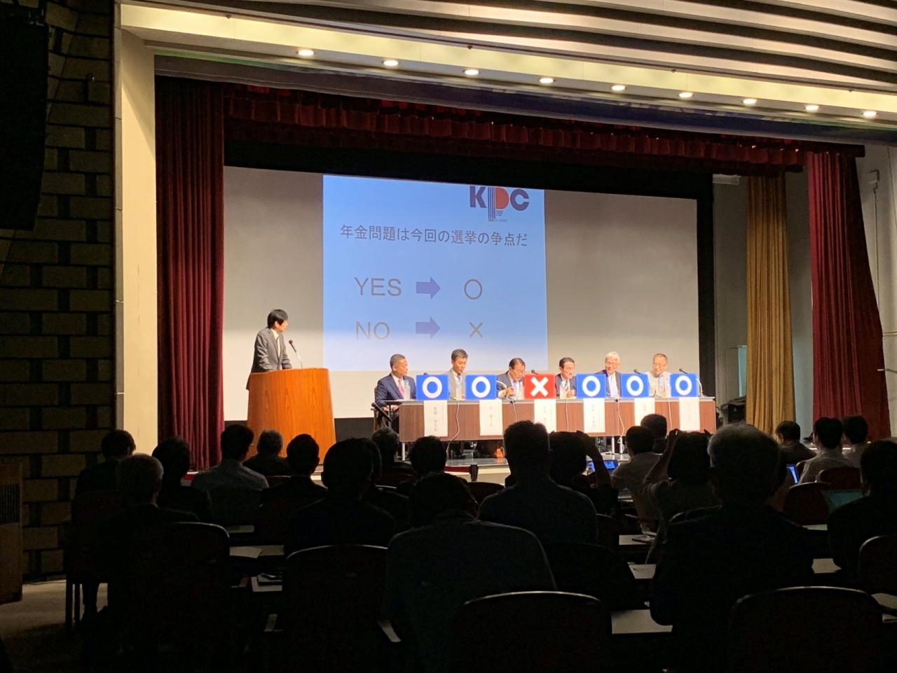 本討論会は、国政選挙にあわせて開催されるもので、今回も参院選(7月4日公示、同21日投開票)を前にしたタイミングでの開催となり、自由民主党の岸田文雄政務調査会長、公明党の石田祝稔政務調査会長、立憲民主党の逢坂誠二政務調査会長、国民民主党の泉健太政務調査会長、日本共産党の笠井亮政策委員長、日本維新の会の馬場伸幸幹事長が参加し、消費増税、年金問題、憲法改正、大阪府・市が誘致を目指す統合型リゾート(IR)などの議題について、激しい論戦が行われました。