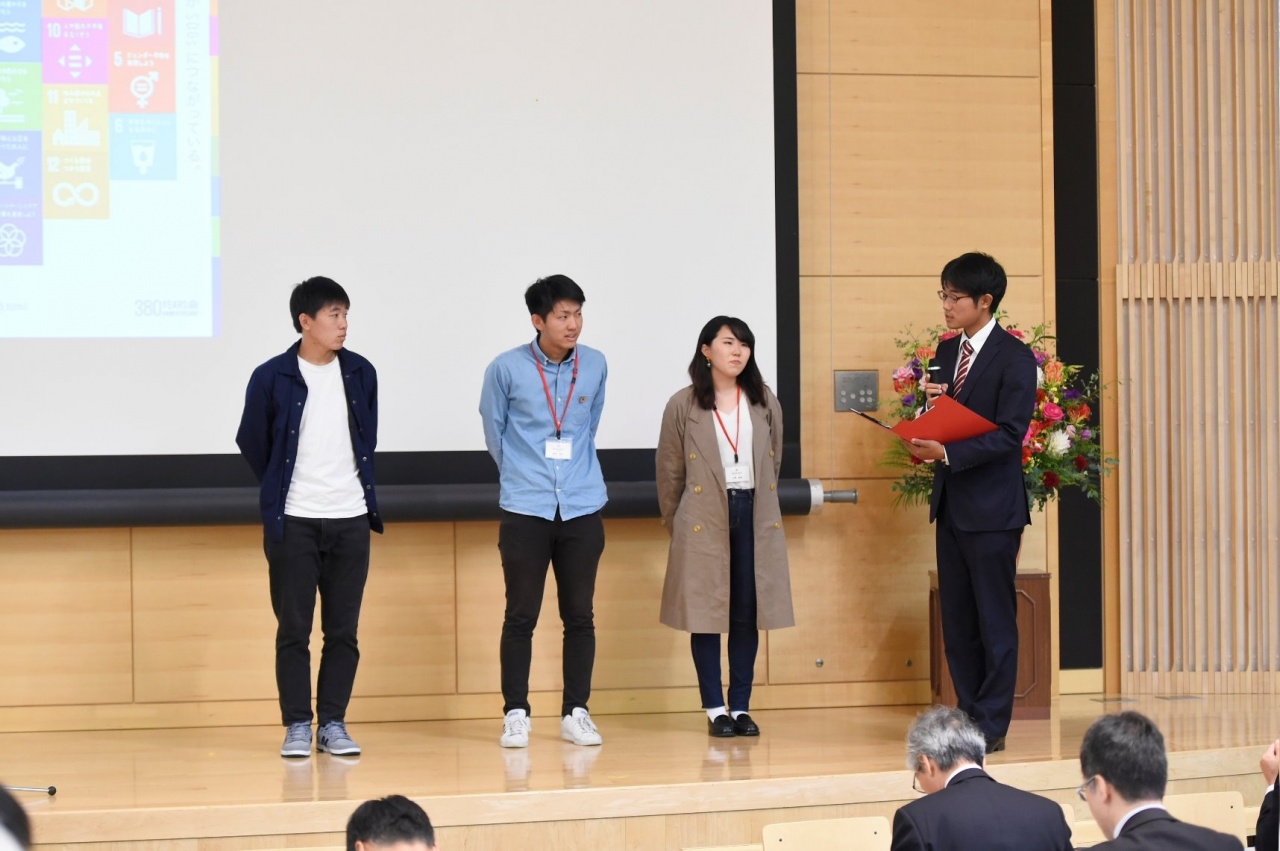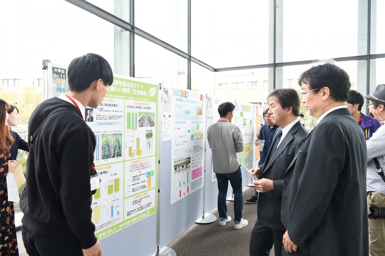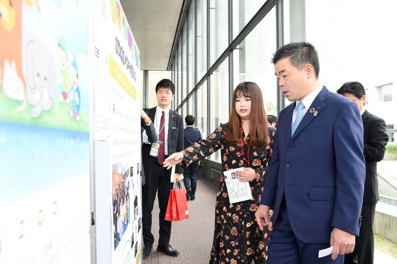 その場には、三日月滋賀県知事も来場され、学生たちの活動についてひとつひとつ丁寧に説明を聞いてくださいました。