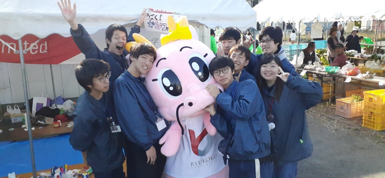 また、本学マスコットキャラクターのロンちゃん、ロン君も会場をねり歩き、ゆるキャライベントに出演したり、和歌山県出身の吉本住みます芸人「わんだーらんど」の二人がブースに来て龍谷大学の宣伝をしていただくなど、地元の祭りを大いに盛り上げてくれました。
