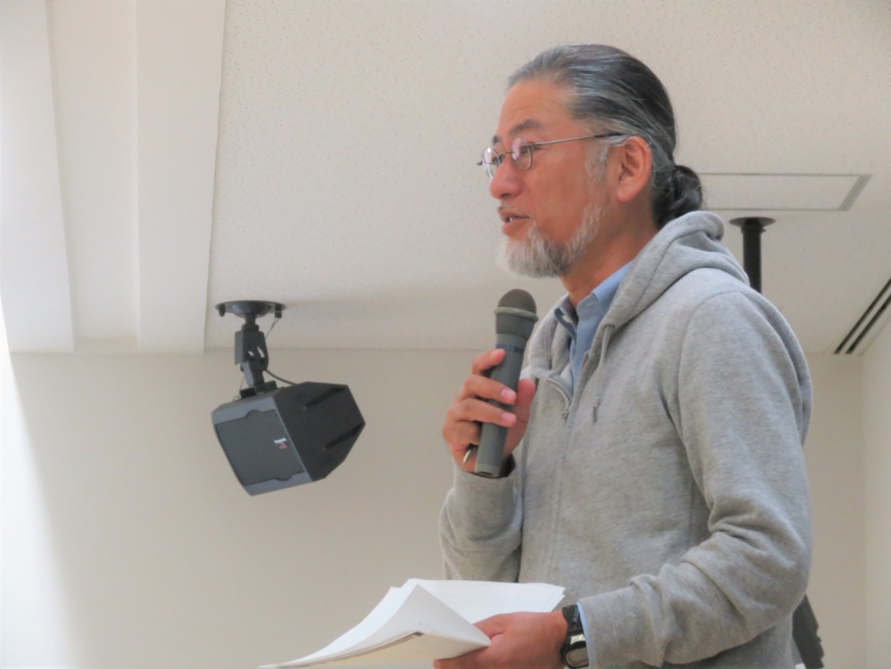 野原氏は、瀬田学舎に隣接する瀬田東学区のまちの成り立ちからご説明くださいました。次いで、大規模災害が比較的少ないこの地域の防災意識について現状と課題を述べられました。