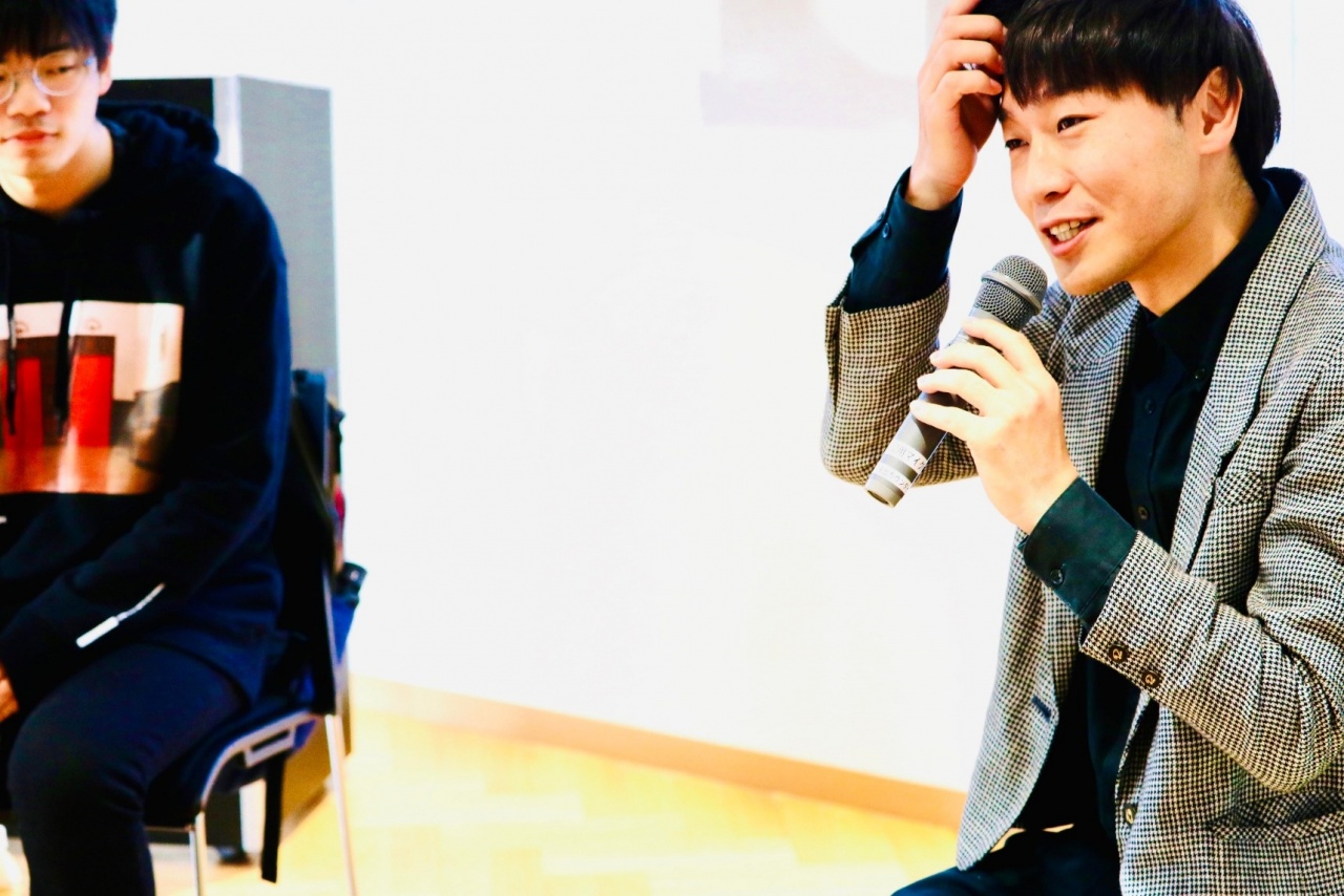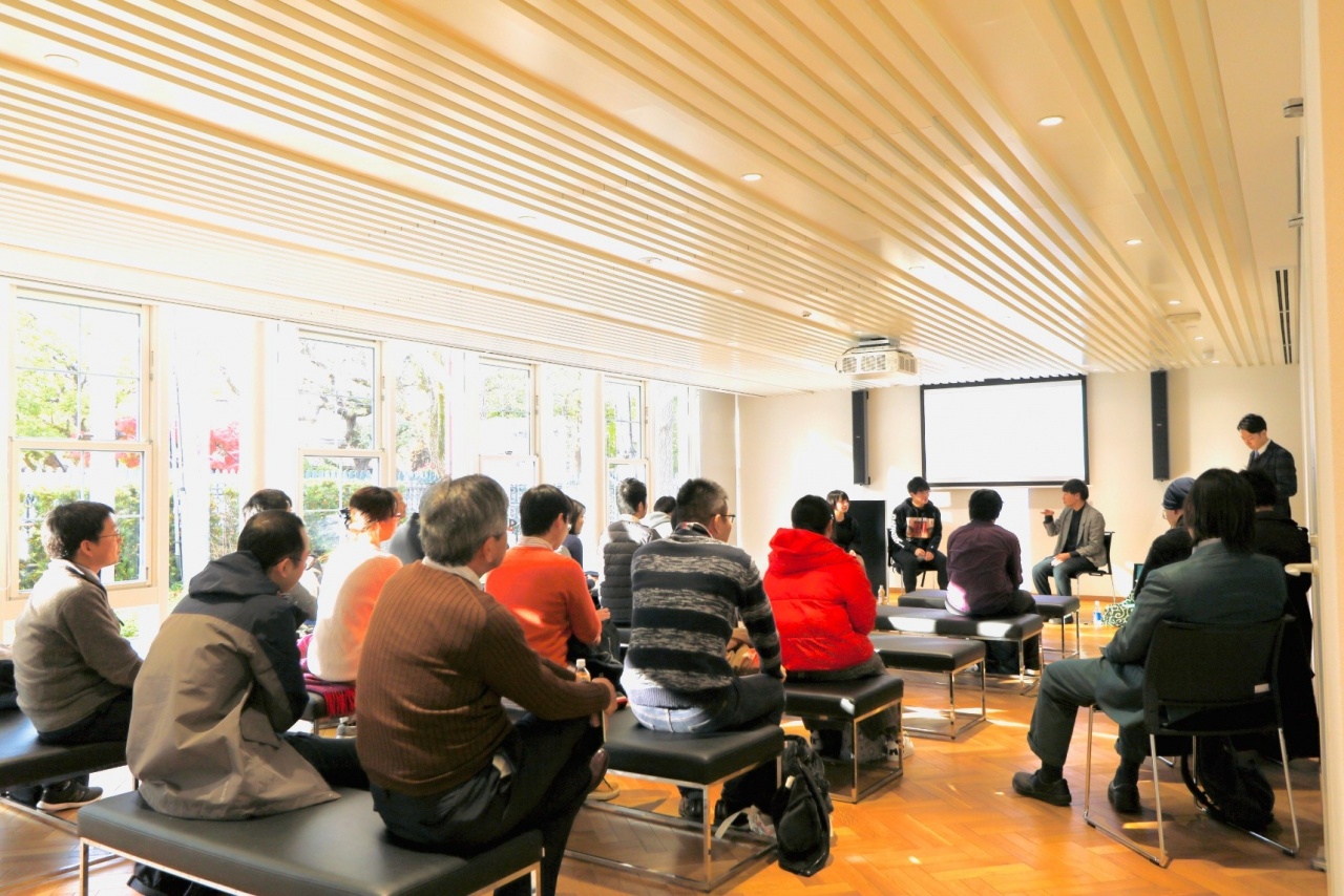 大宮学舎140周年記念事業のひとつとして「社会で活躍する卒業生の講演会」が12月12日(木)に、大宮学舎東黌1階のイベントスペースで開催されました。尾道で真夜中に営業する古本屋「弐拾db(にじゅうでしべる)」を営んでおられる藤井基二さん(日本語日本文学科卒)をゲストにお招きし、学生とのトークセッションという形でお話いただきました。会場には学生や教職員など多くの来場者があり、藤井さんの巧みな話術で笑いが絶えないトークセッションとなりました。学生からは「本の仕入れや古本屋の経営について」「中原中也の魅力とは?」など様々な質問が出され、いずれの質問にも巧みな藤井節でお答えをいただきました。