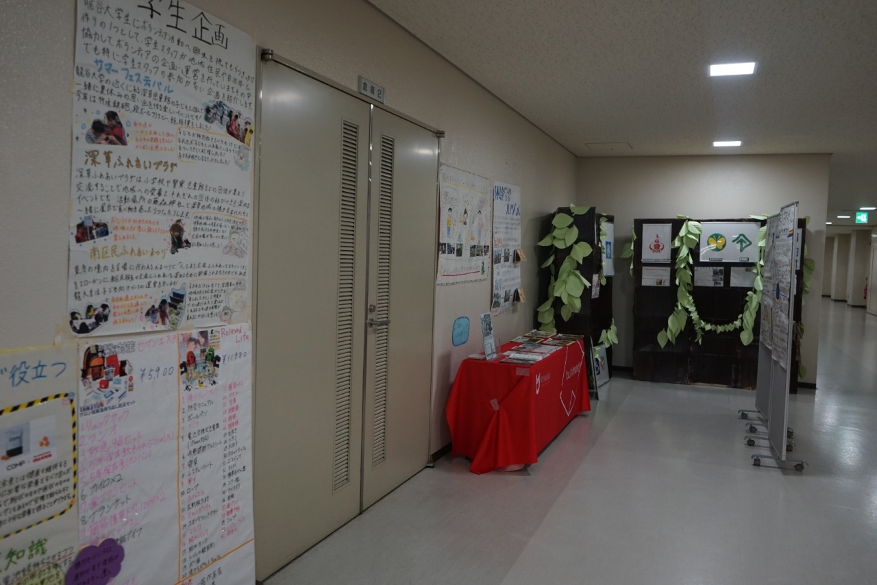 1部と2部の休憩時間に、本学手話サークルLEMONによる手話発表やボランティア・NPO活動センターの学生による展示物の紹介、障がい学生支援支援室(大宮)の紹介を行いました。