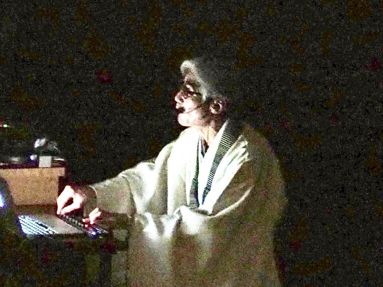 朝倉氏は、仏教儀礼の場に光と音を導入したテクノ法要を行っている。奇抜なことをすることが目的ではなく、その奥にある「様々な意見や刺激に対応できる感受性を持ち続け」、一人でも多くの方が、自由にお参りできることを目指し取り組んでいるとのこと。当日は、映像を用いた煌びやかな浄土の世界が会場に表現された。