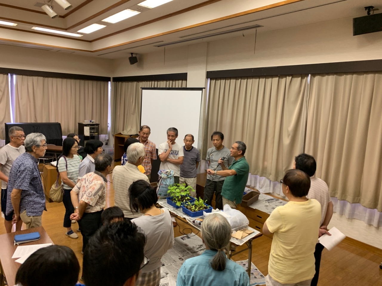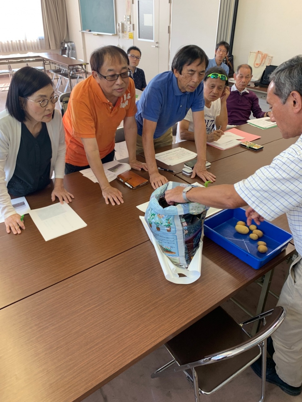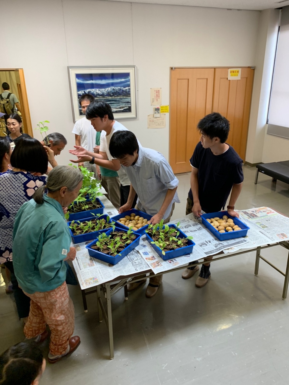 2019年9月1日に実施した家庭菜園説明会には、龍谷大学農学部の佐藤茂教授を講師として、事前に広報した小学校・中学校の児童や仰木の里市民センター利用者、自治会加入者から、幅広い世代の24世帯50名の参加者に対して丁寧な説明と共に、野菜の苗を配布しました。また、10月5日には、家庭菜園プロジェクトに参加した住民を対象に、栽培の状況を共有する「中間相談会」を実施し、地域間でよりコミュニケーションが深まる機会を提供しました。「家庭菜園プロジェクト」の取り組みとしては、各家庭(約25軒)や仰木の里市民センターで、じゃがいも・きゅうり・かぶを栽培することになります。野菜の育成状況を相談する中間報告会等を通じて、参加者間の交流を促すことができました。