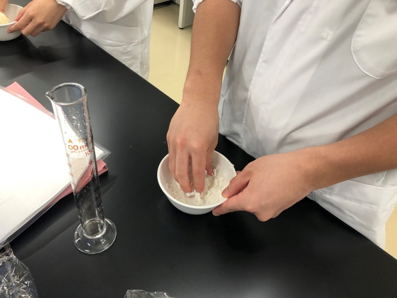 本記事に掲載している写真は「食品学実験」の授業風景です。