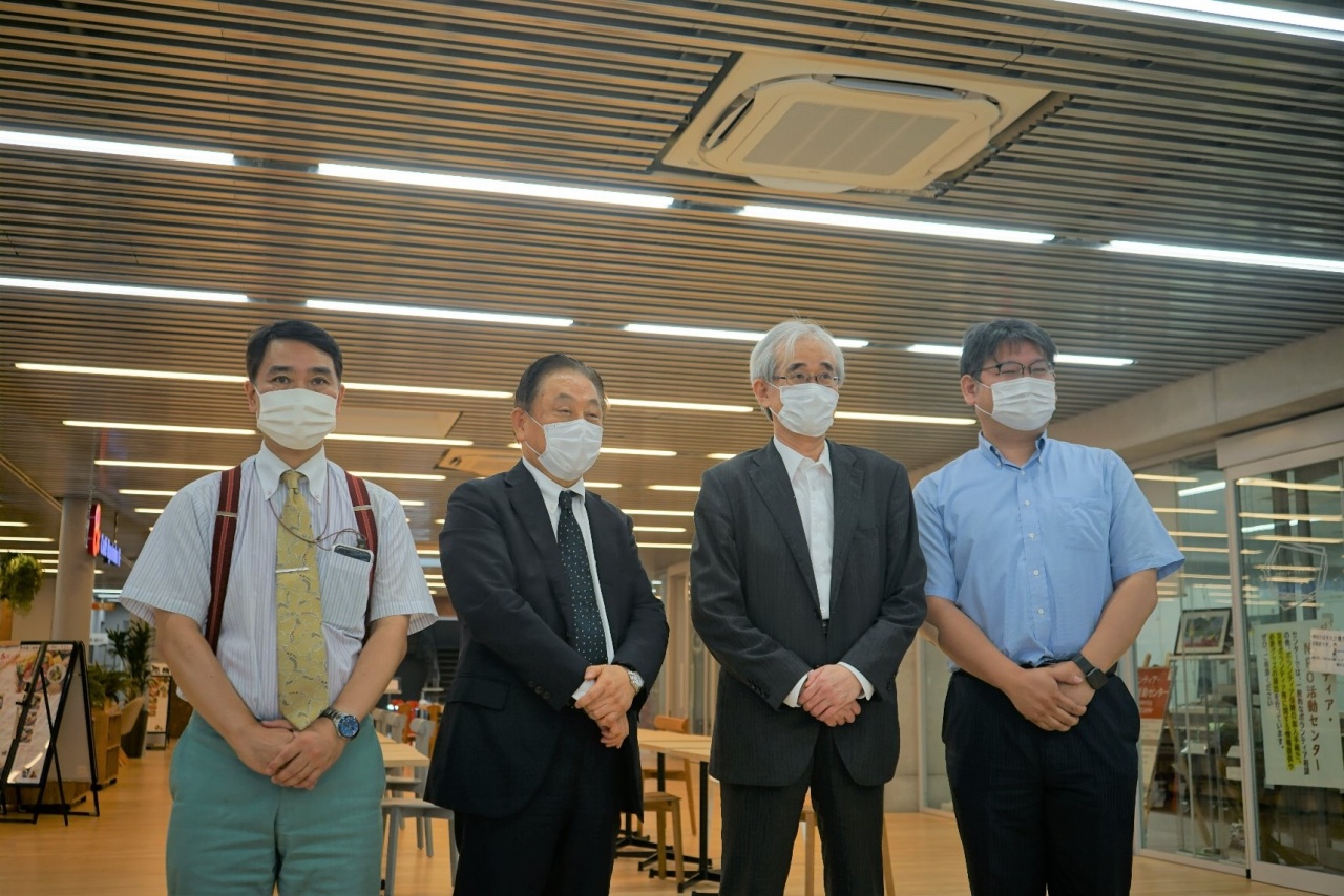 梅田社長は本学経済学部同窓会の常務理事を務めており、経済学部と経済学部同窓会理事との懇談会の場で、小峯学部長が食支援プロジェクトの取り組みを紹介したことがきっかけとなり、今回のご縁につながりました。