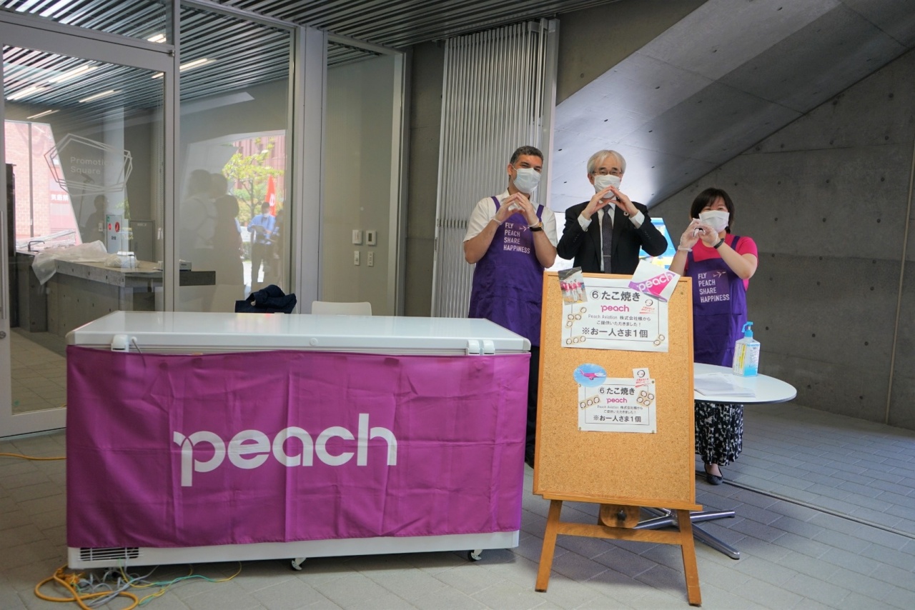 本学の取り組みに賛同いただき、航空会社Peach Aviationや大阪王将、コカ・コーラ、京都生協などをはじめとして、20社を超える企業、団体、個人の皆さまから、食材や生活物資の提供、配布活動ヘの参加など、数多くの支援をいただきました。