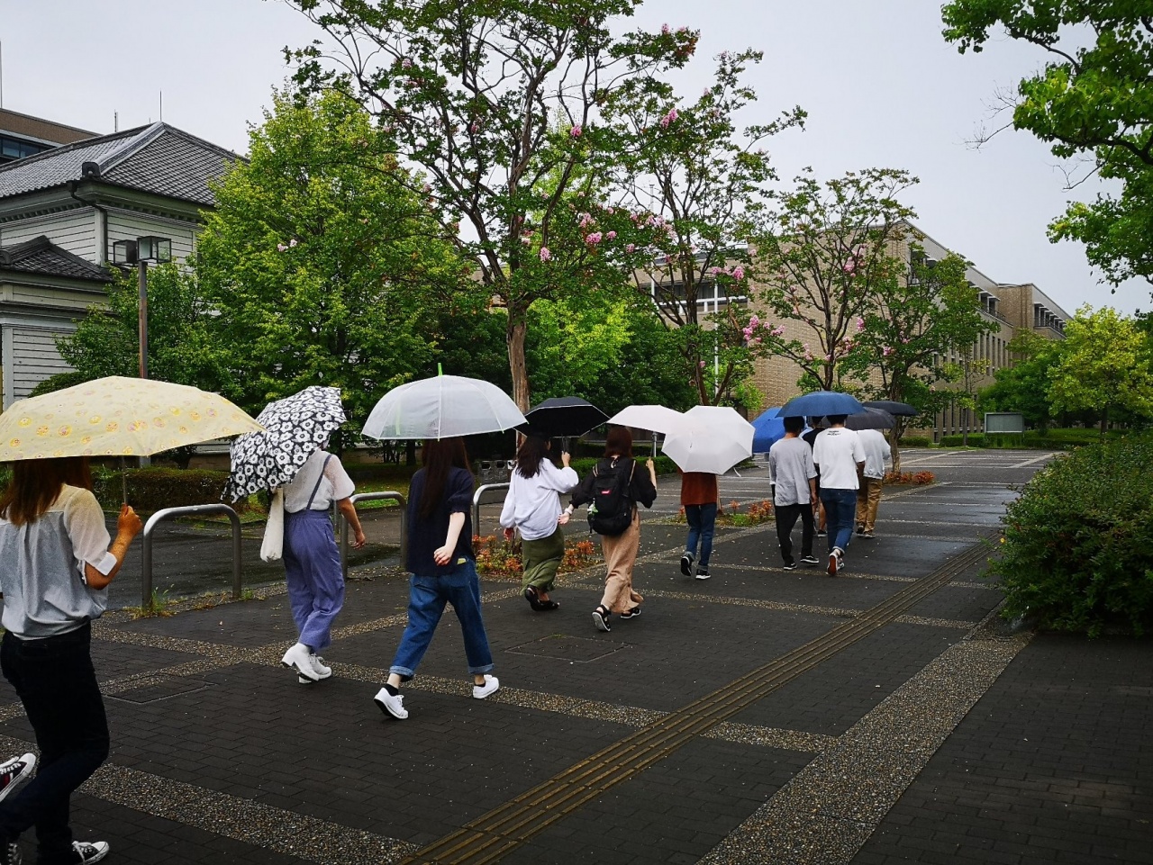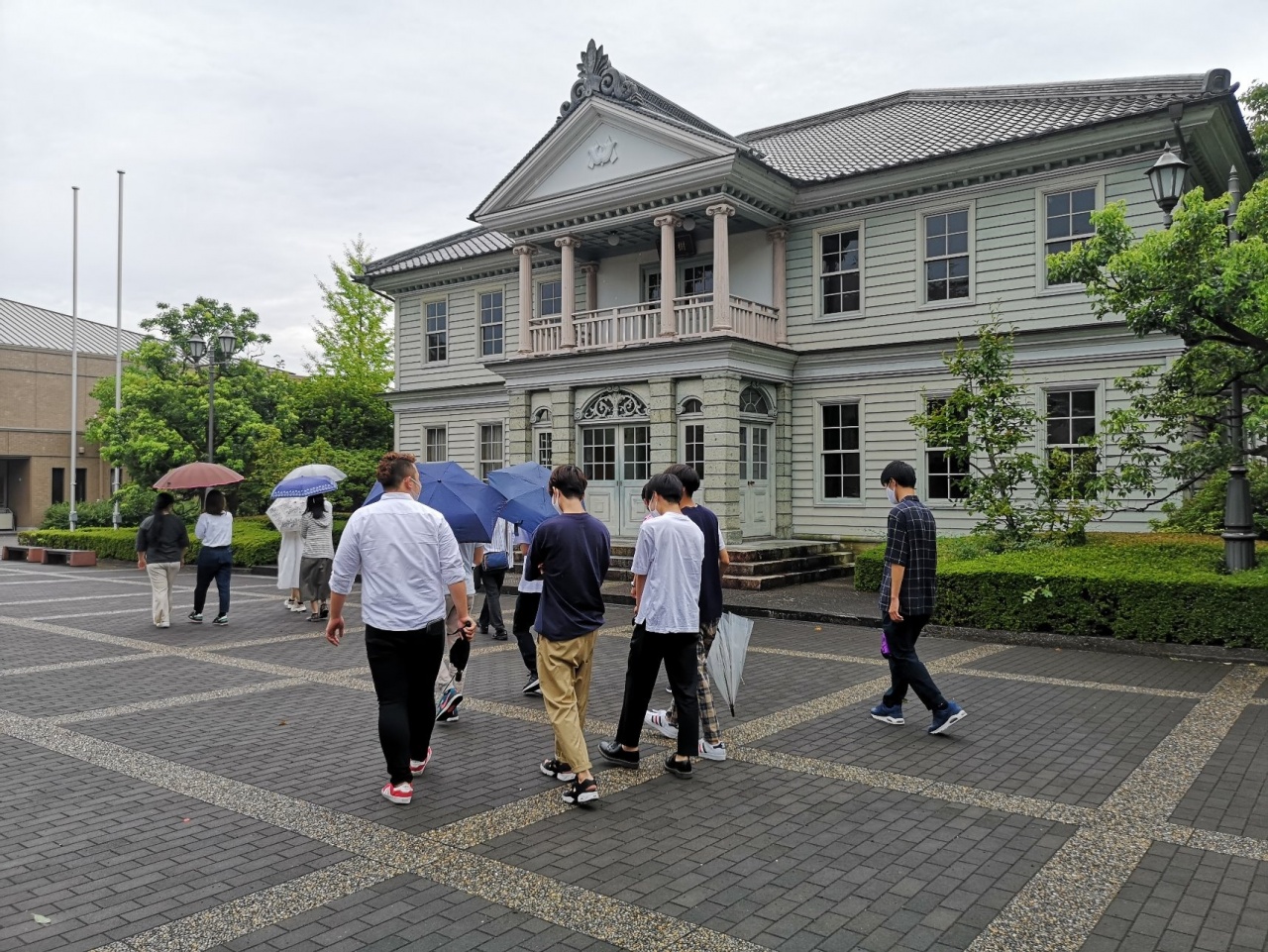 学生らは、各クラスの教員の案内で瀬田キャンパスをめぐりました。対面では、感染予防でマスクをつけての初顔合わせでしたが、友人らと会話を楽しむ様子が見受けられました。