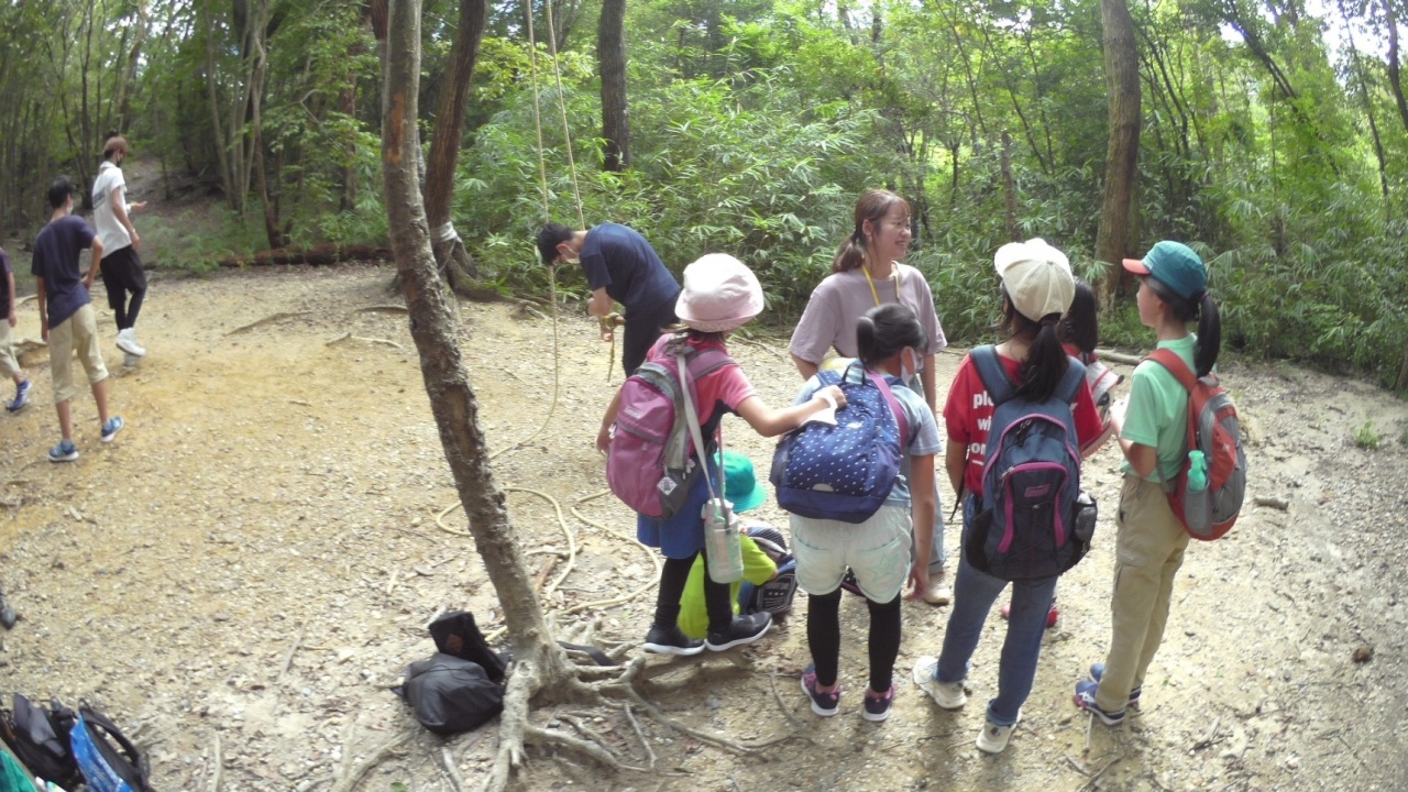 夏休みに入り、徐々に連携先であるプレイスクールの活動が再開され、これまでは工作を中心とする「発明クラブ」のお手伝いをしてきましたが、当日は、森の中に入って活動する「冒険クラブ」の補助をしました。
