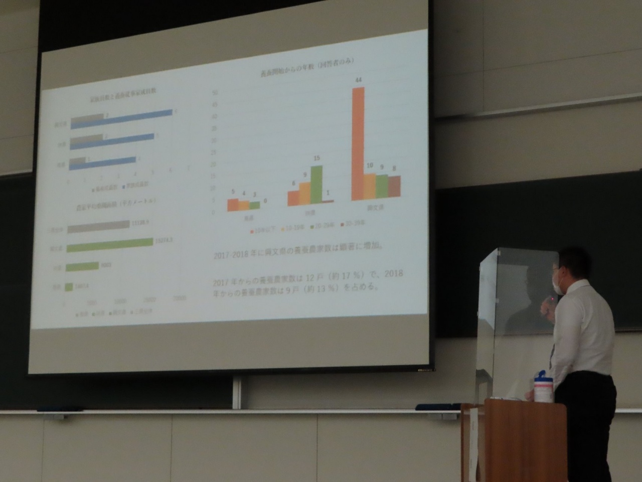 龍谷大学大学院農学研究科食農科学専攻は、2018年度に開設され今年で開設3年目となります。今般、食農科学専攻の履修モデルごとに学位論文中間報告会を開催しました(農業生産科学モデルは植物生命科学系と資源生物科学科系で分かれて実施しました)。修士課程生は2期生、博士後期課程生は1期生が対象です。博士後期課程1期生は、本学農学部の卒業生はおらず、みな社会人学生の方々で、職を持ちながら本学研究科生として学びを深めております。修士課程2期生は、農学部1期生の方々で、初めての本学部からの進学者です。