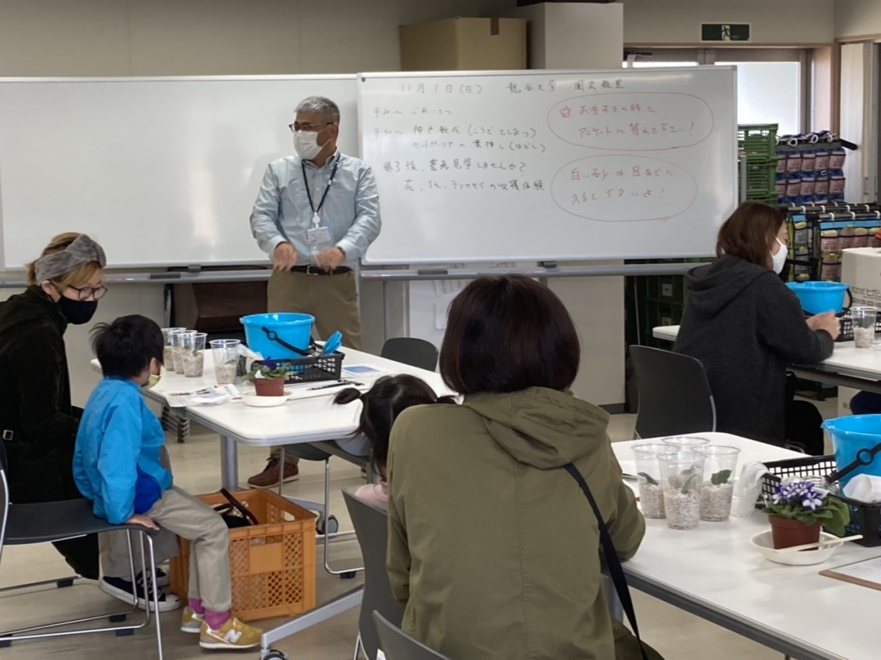 2020年11月1日(日)、農学部牧農場がある大津市牧地区において、大津市上田上青少年育成学区民会議と連携し、ちびっこ園芸教室「植物がもつ不思議な力を学ぶ!」を開催しました。