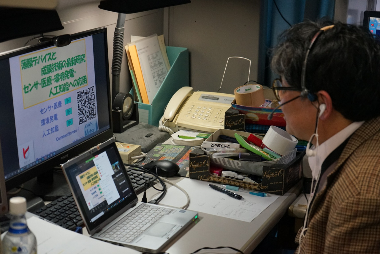 コロナ禍の影響で今年度は開催できていなかった第1回REC BIZ-NET研究会を11月17日(火)にオンラインで開催いたしました。今回の研究会では、第一線で薄膜デバイスとその応用を研究している木村睦教授(本学先端理工学部電子情報通信課程)が、これまでの研究から最新の研究までを紹介しました。参加者からは、参加してよかったというお声をたくさんいただくことができました。