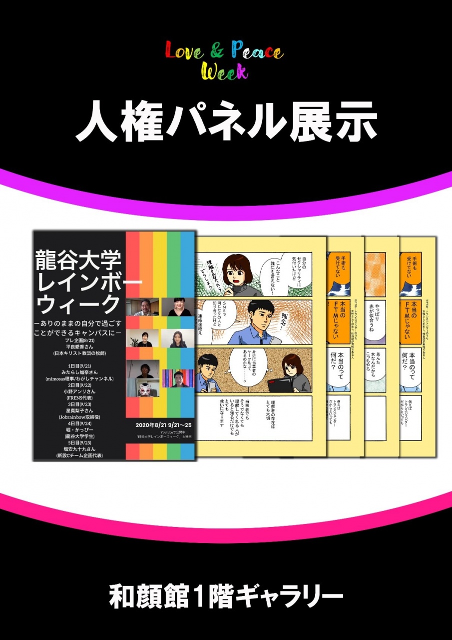 いのちと平和、人権を考える宗教部Love & Peace Weekの一環として、深草キャンパス和顔館1階ギャラリーにて人権パネル展示をおこないます。