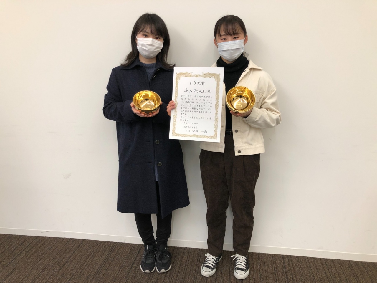 今回、栄えある「すき家賞」を手にしたチーム牛しゃぶは、食品栄養学科1回生のチーム(2名)でした。そんな2人に受賞インタビューをしました。