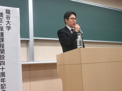 11月8日、矯正・保護課程開設40周年記念事業の一環として第2回「学生向け講演会」を深草学舎で開催しました。今回は、本学卒業生で、現在、京都医療少年院に勤めている山本雄一統括専門官を講師にお迎えし、「法務省専門職員(法務教官)の職務と矯正教育の現況等について」と題して、ご講演いただきました。