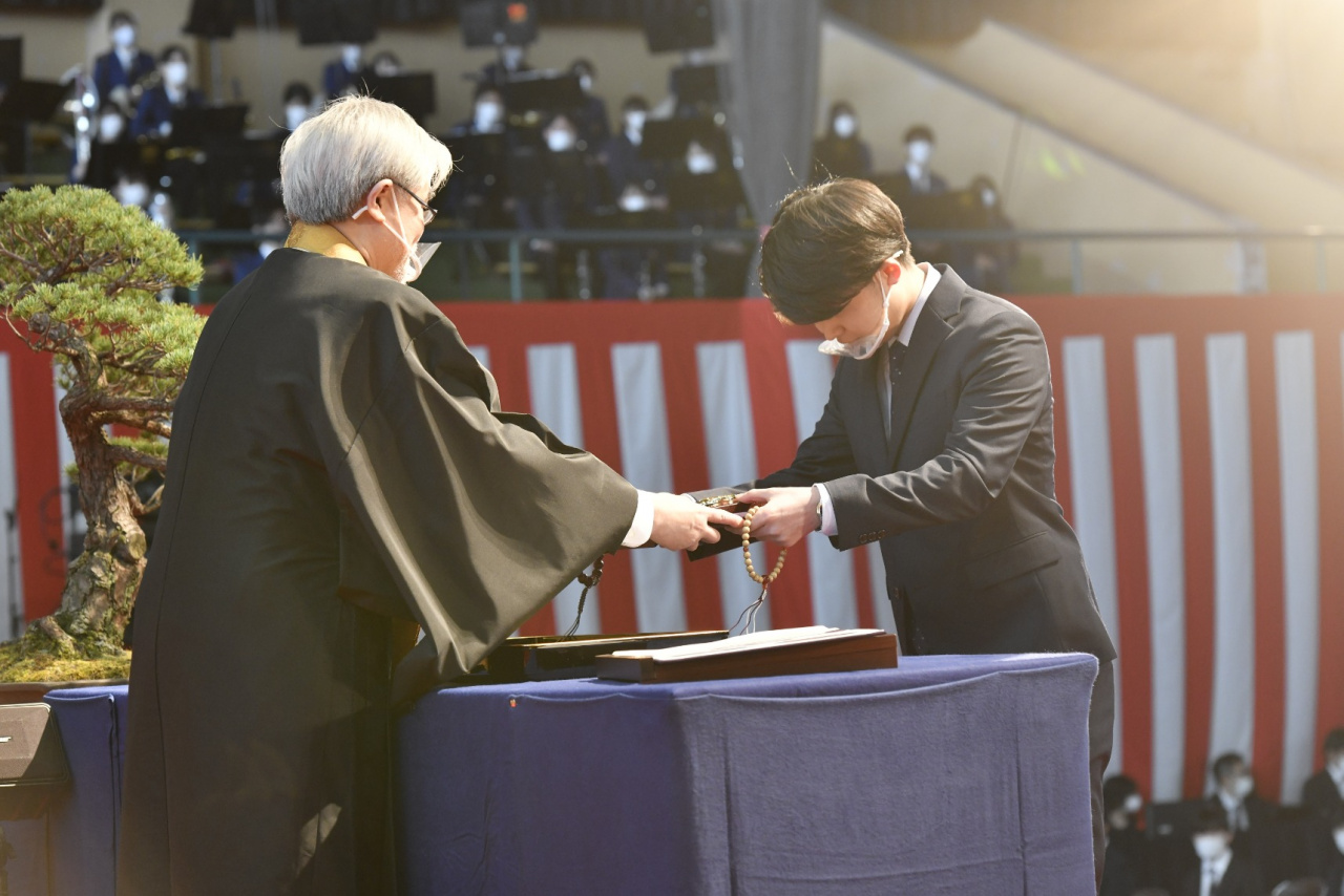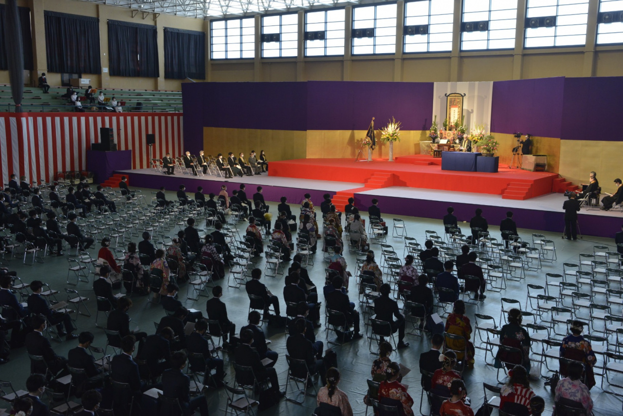 新型コロナウイルス感染拡大防止の観点から、保護者向けにはライブ配信を行い、会場内にはソーシャルディスタンスを保った上で卒業生のみとなりましたが、天候にも恵まれ、晴れやかな卒業式になりました。