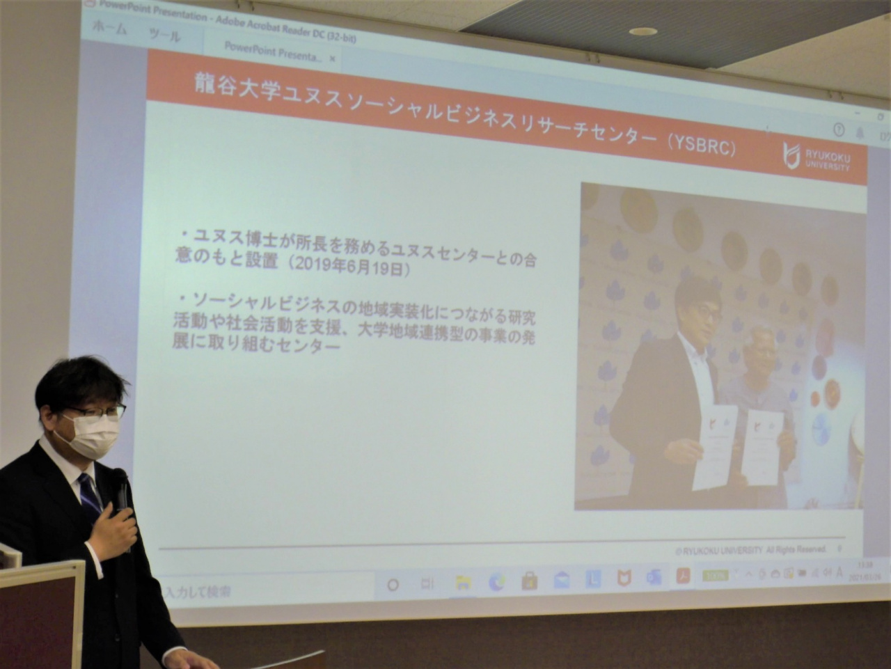 龍谷大学が2013年から域学連携事業を実施し深い関係にあり、2014年から「地域人材育成及び地域活性化に係る相互協力に関する協定」を締結する洲本市において、2021年3月26日に「龍谷大学ユヌスソーシャルビジネスリサーチセンター洲本ブランチ」の開所式を挙行しました。