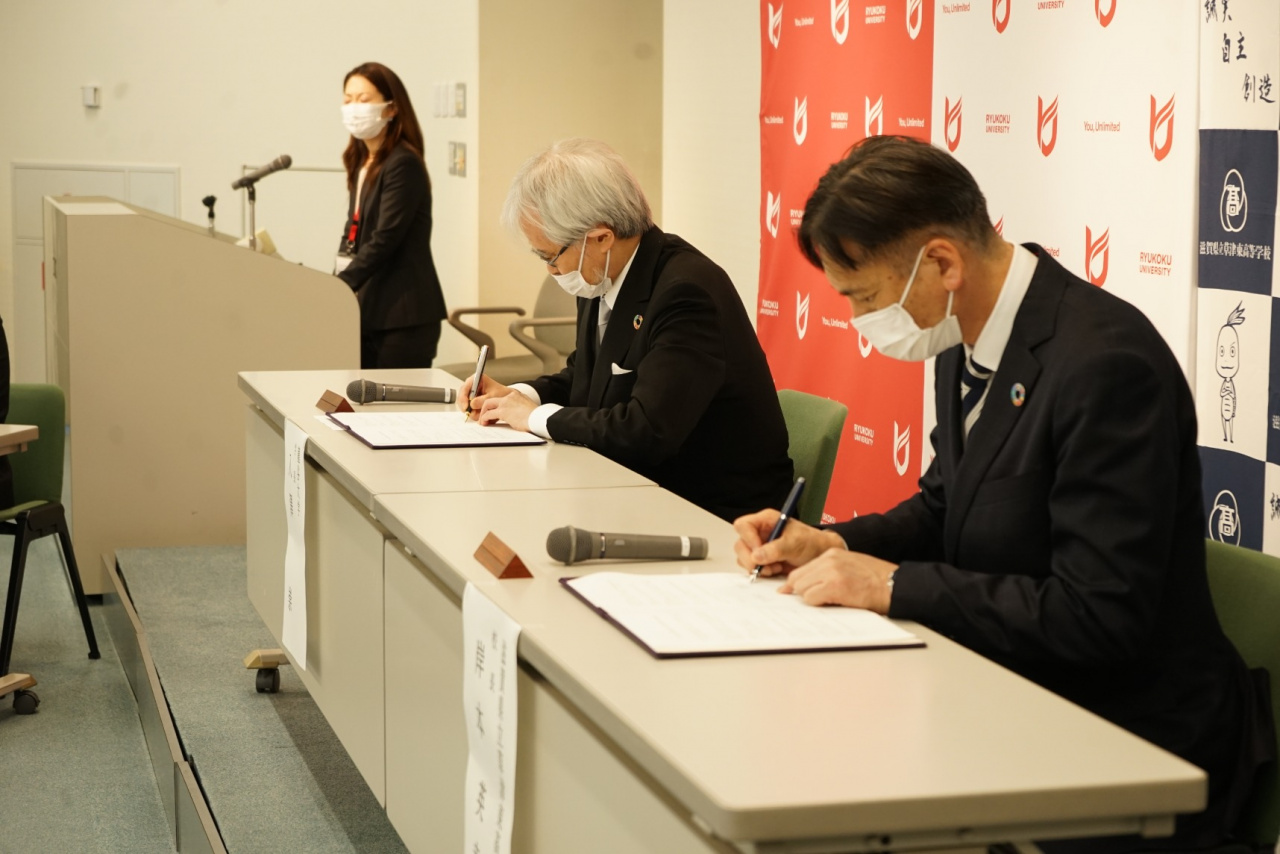 2021年4月19日(月)、龍谷大学瀬田キャンパス(RECホール)にて、本学と滋賀県立草津東高等学校(以下草津東高校)は「龍谷大学と草津東高等学校との高大連携に関する包括協定」の締結式および記者発表を行いました。
