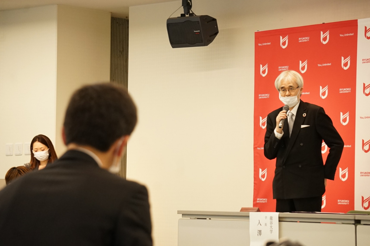 「高大連携は高校、大学共に非常に重要な役割を果たすと考えています。高校と大学が手を結び、学生ならではの発想、行動力により社会課題を解決していく、このことが今、世界に求められています。大人がこれまで取り組んでこなかったことに気付き、行動する。このような動きを強めていくためには高大連携が必要となります。草津東高校と龍谷大学の連携をより強めていくことで、双方の教育力を高めていきたいと思います。」