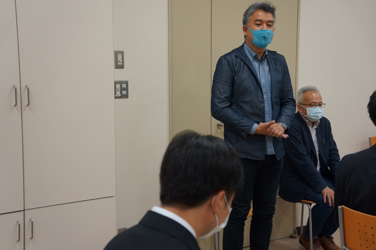 表彰式は本来であれば、経済学部教授会の冒頭で行われますが、新型コロナウイルス感染拡大の状況に鑑み、人数を制限し三密を避けるなど、感染予防対策を徹底したうえで開催しました。(写真撮影の一瞬のみ、マスクを外しました。)