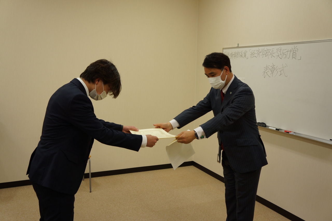 経済学部では、2020年度「経済学部長賞」及び「経済学部長奨励賞」の表彰式を行いました。