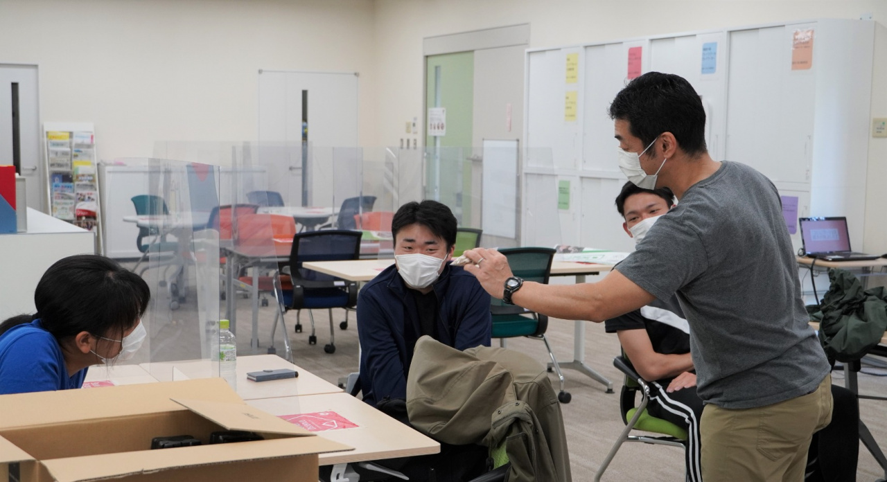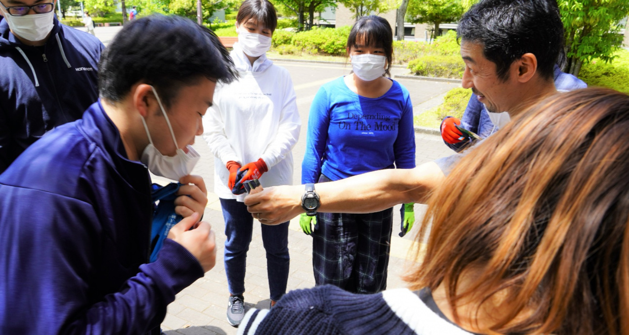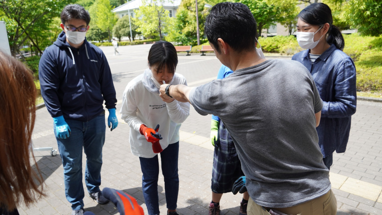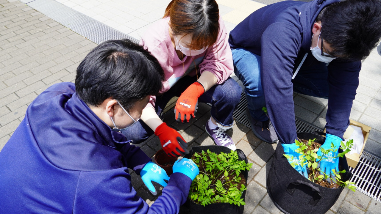 学内作業の当日は天気にも恵まれ、暑いくらいの中「土いじりするのは10年振りかも…。」という受講生と、慣れた手つきで「実家で結構手伝っている」という受講生が協力して作業を進めました。久し振りの屋外活動で、身体を動かしながらの作業を受講生たちも楽しんでいる様子でした。