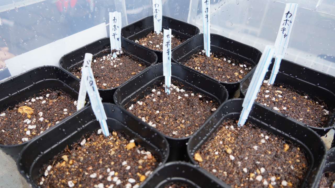今後は水やりを行うなど管理を続け、苗を畑に移せるまで、学内に展示する予定です。まずは無事に苗が育つよう受講生たちも見守っていきます。
