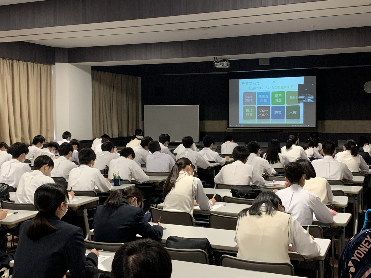 初日となった5月24日は、文学部哲学科哲学専攻と政策学部政策学科の説明会が行われ、この日を皮切りに、6月29日まで、全21学科・6専攻・6課程のガイダンスが付属平安高校で対面またはオンラインにて行われます。