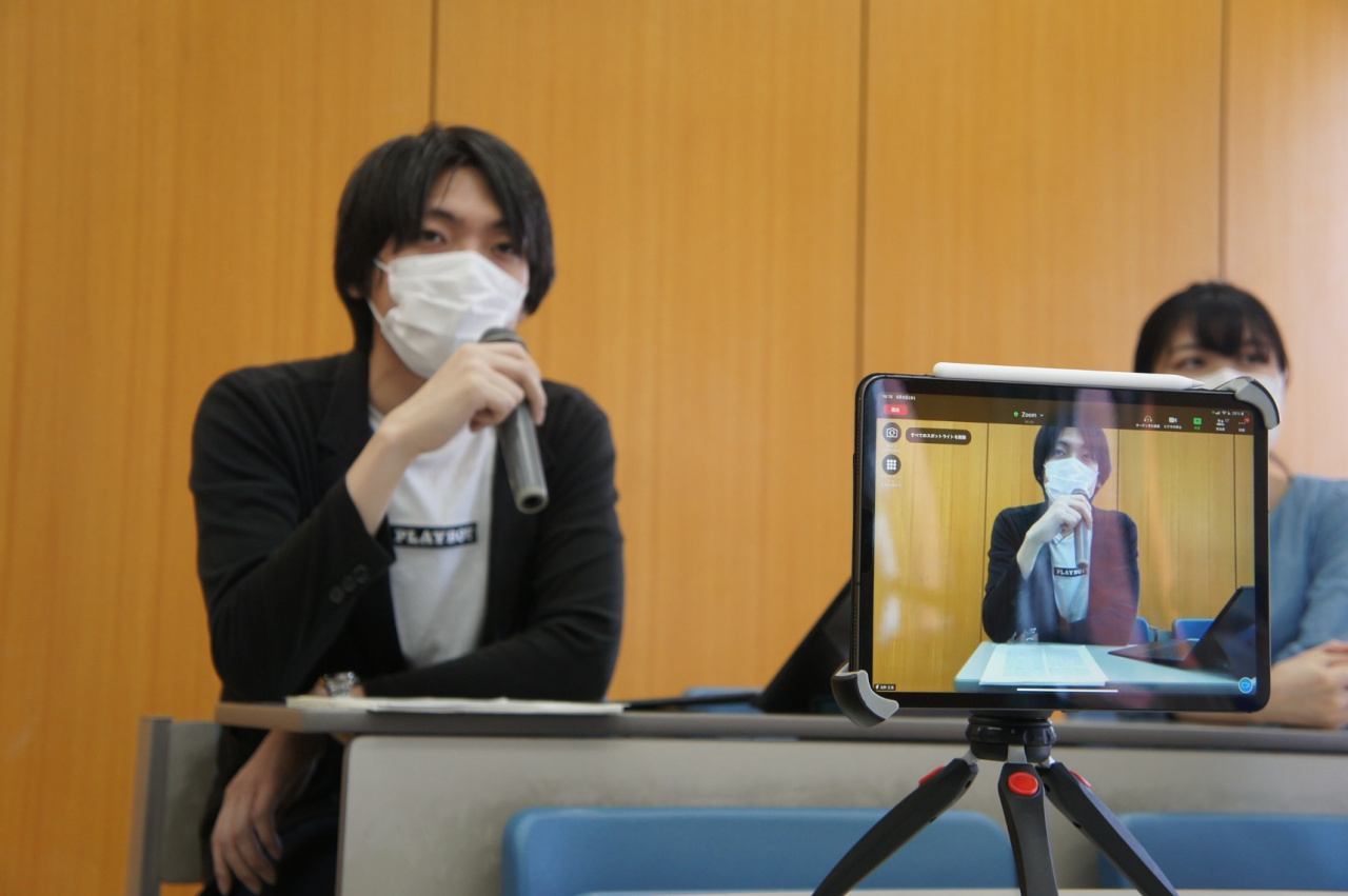 経済学部では、「授業内ピア・サポーター(PS)」制度を確立し、定期的に研修を行っています。入門演習におけるメンターシップ制度の試行に合わせて、メンター2名を招いて、ハイフレックス型の研修を実施しました。