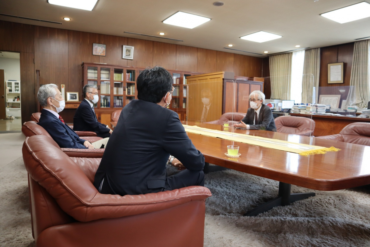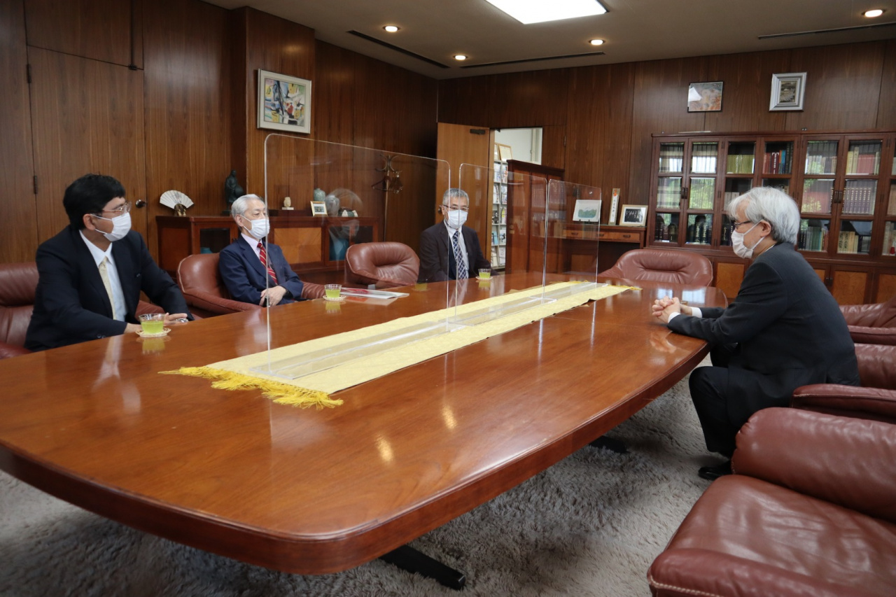 閉会式の終了後、宮澤節生 名誉教授(神戸大学, アジア犯罪学会会長, 本学・犯罪学研究センター 客員研究員)をはじめ、大会組織委員会の主要メンバーが入澤 崇学長を表敬訪問しました。