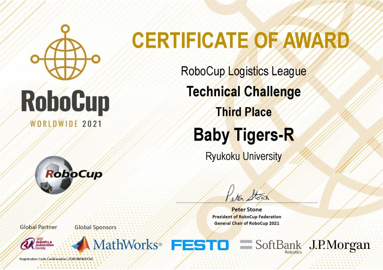 オンラインで開催された自律移動ロボットの世界大会RoboCup2021 にて、本学先端理工学部電子情報通信課程の植村研のBabyTigers-Rは、Logistics League で4位、Technical Challenge で3位入賞の結果となりました。
