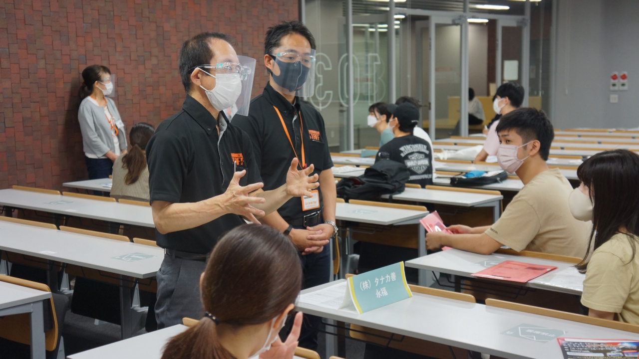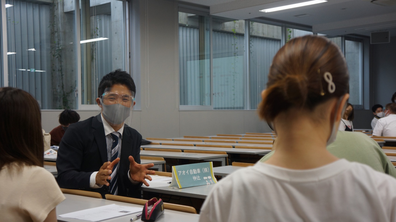 企業側は「福利厚生面では大企業にかなわないが、自社の社員は家族みたいな存在。社員が資格を取りたいといえば全力でサポートしている」(経営者)、「中小企業は人数が少ないため、一人ひとりの責任は重いがやりがいも大きい」(社員)などと自社をアピール。その後は、学生からの「同業他社と比較した強みや弱みは何ですか」、「社長は社員に何を期待していますか」、「どんな就職活動をしていましたか」といった率直な質問に回答いただきました。