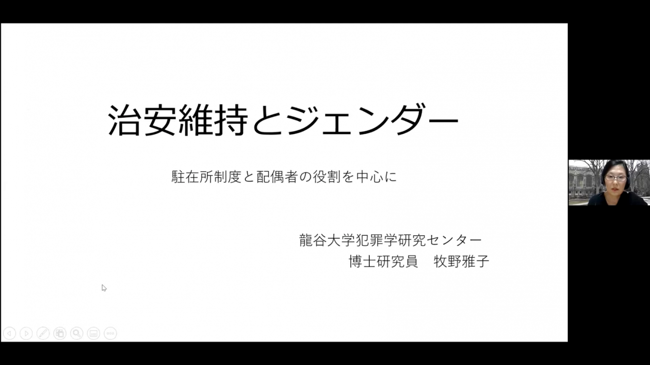 2021年7月29日、犯罪学研究センターは第26回「CrimRC(犯罪学研究センター)研究会」をオンラインで開催し、研究メンバーを中心に約30名が参加しました。今回は、本学で研究活動をおこなっている3名の個人研究について報告が行われました。