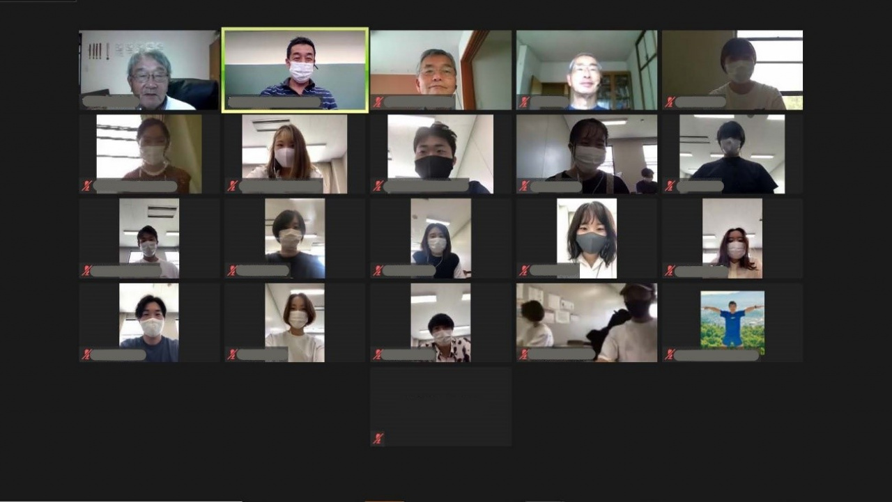 プロジェクト最初の活動として、6月17日の坂本ゼミ(2講時)に、3回生15人と同支部のメンバー3人が顔合わせを行いました。ゼミメンバーは教室で、支部メンバーは自宅から、それぞれオンラインで参加しました。