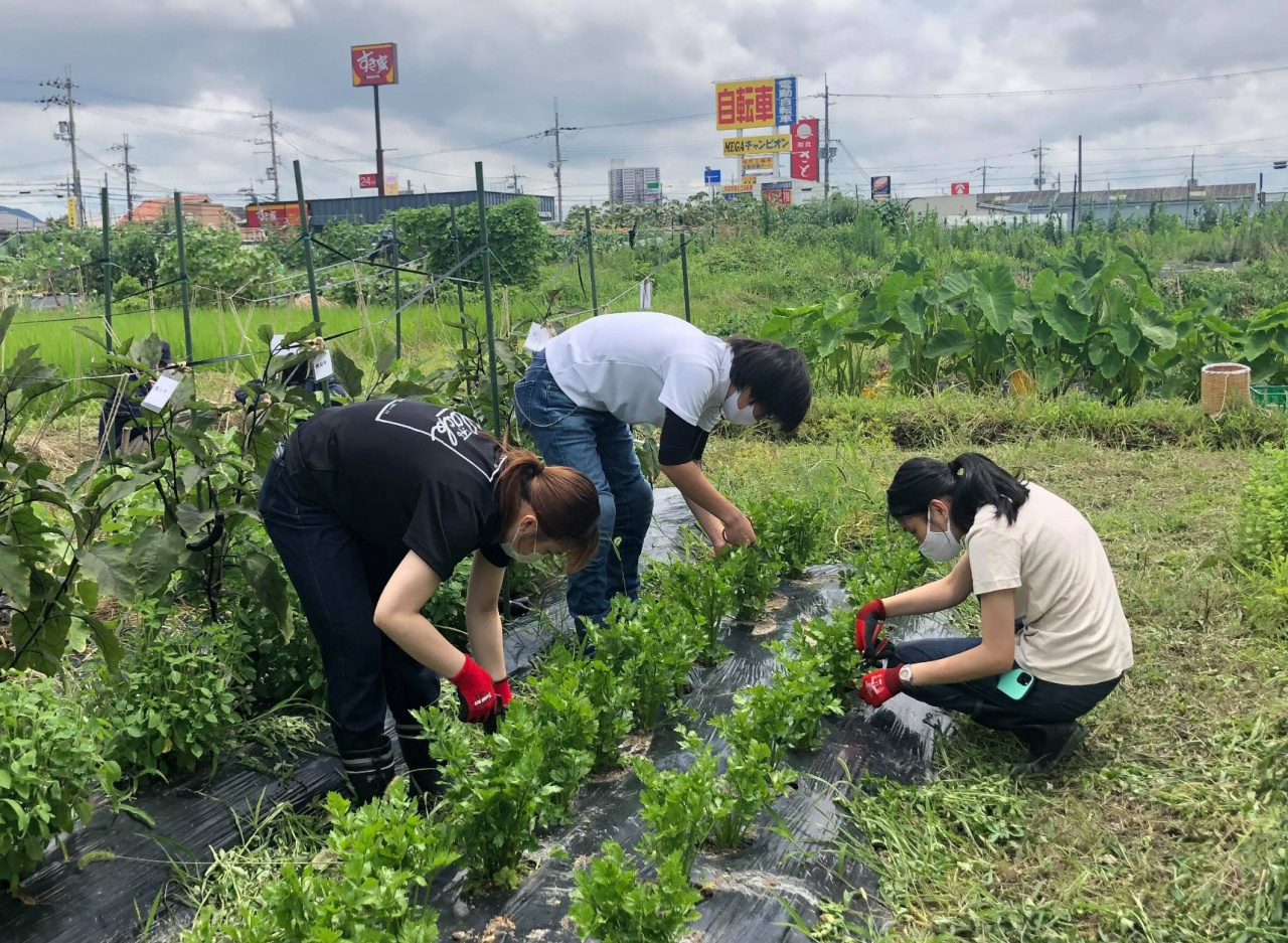 「社会共生実習(農福連携で地域をつなぐ―「地域で誰もがいきいきと暮らせる共生社会に向けて」)」(担当教員:コミュニティマネジメント学科 坂本清彦)では、7月2日から30日まで4回にわたり、受入先の農福連携事業にとりくむ滋賀県栗東市の「おもや」で活動しました。