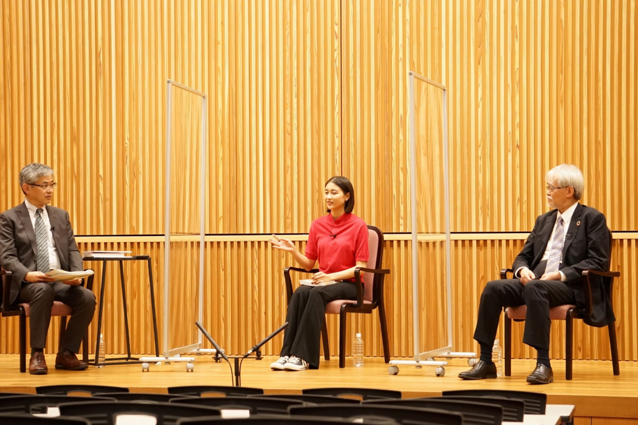 龍谷ミュージアムでは開館10周年を記念し、9月26日(日)に大宮キャンパスにて、アイドルとして活躍中の和田 彩花さんと入澤 崇 龍谷大学学長とのトークセッションを開催しました。司会は安藤龍谷ミュージアム館長が務めました。